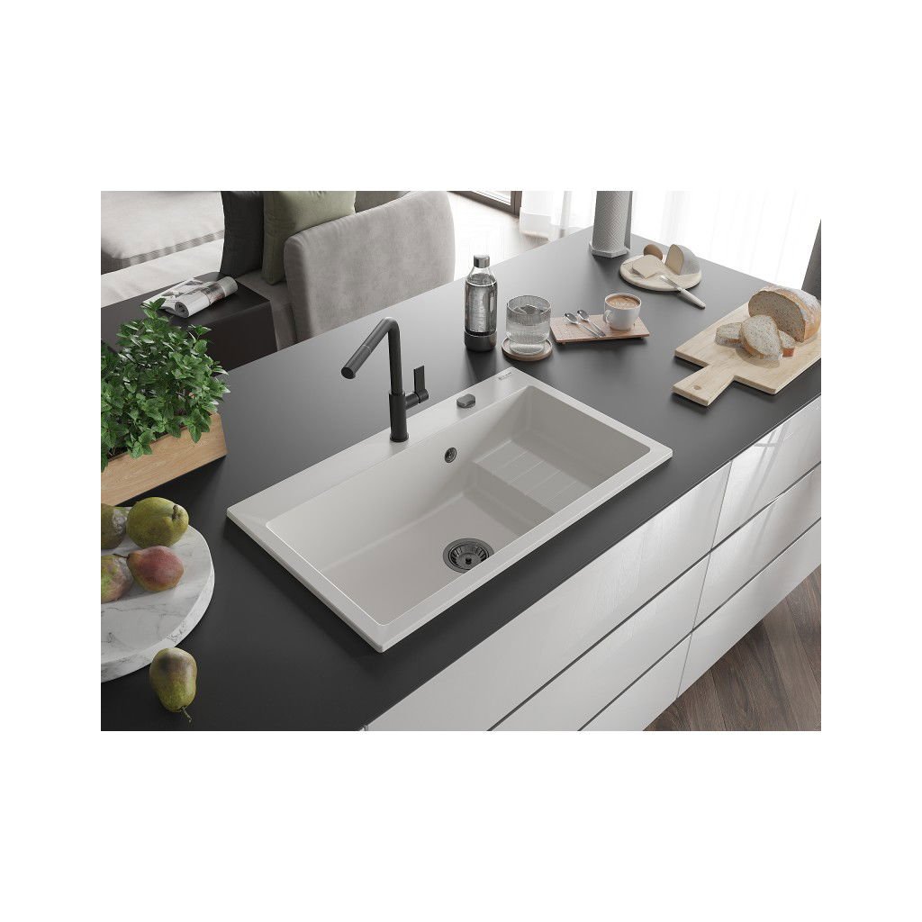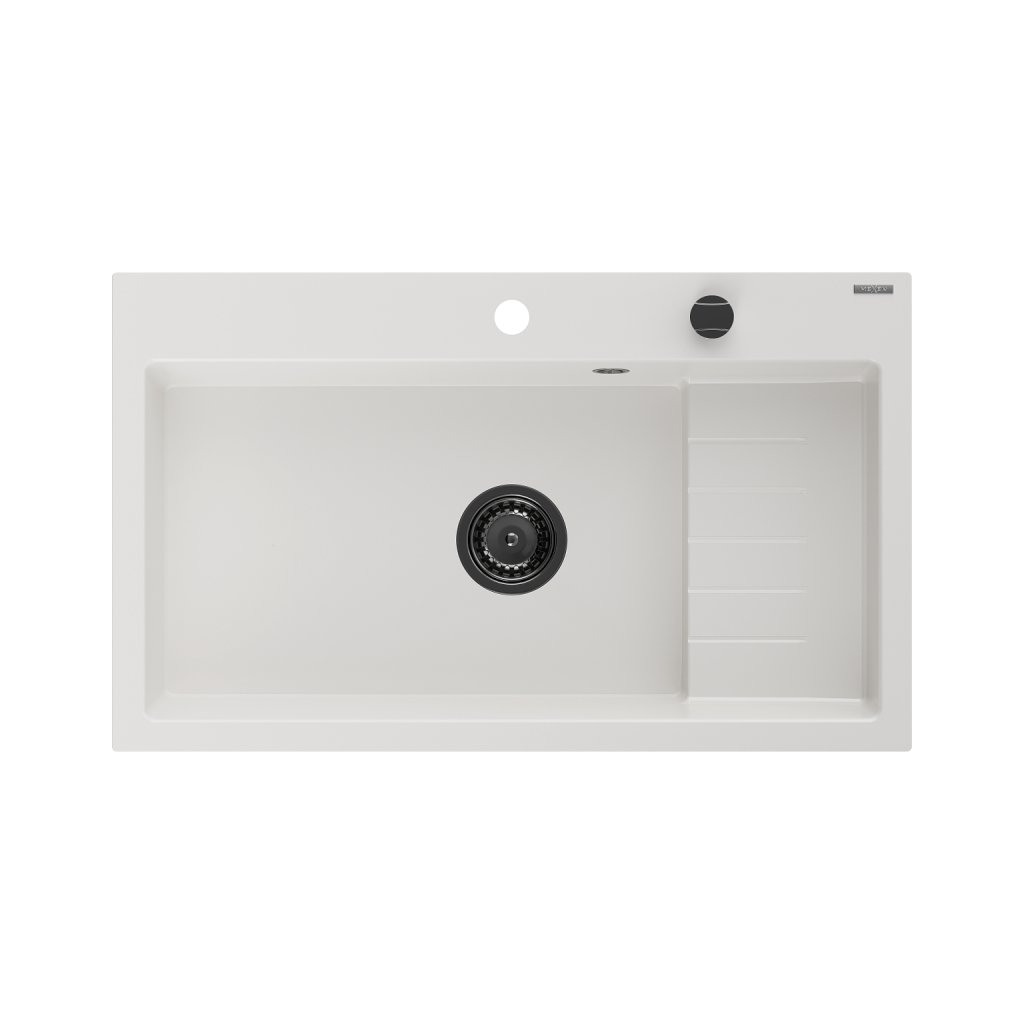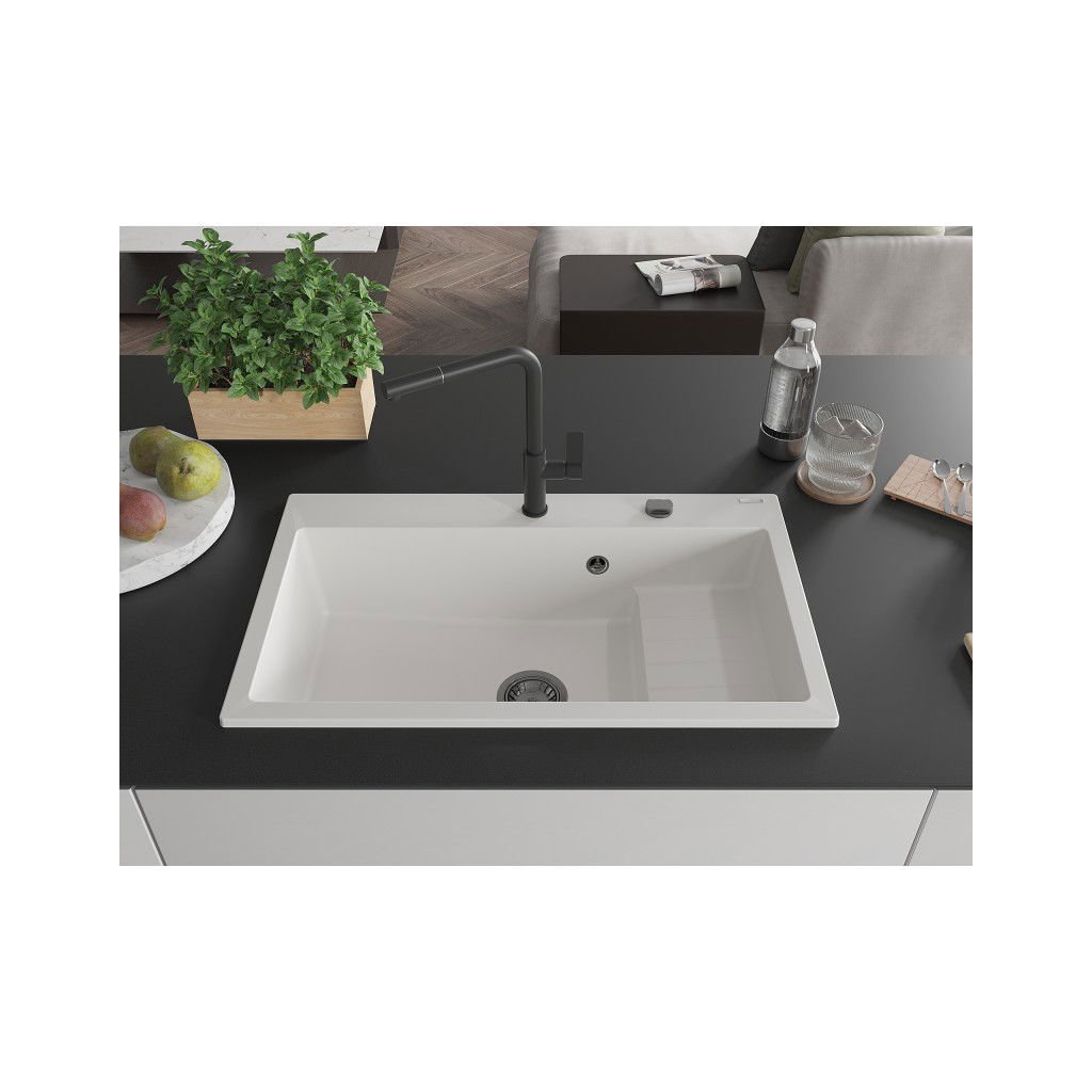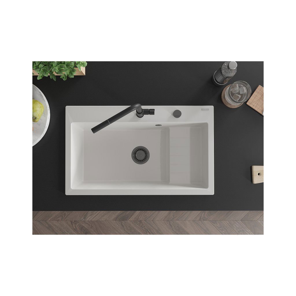 Mexen Omar, 1-komorový granitový drez 800x480x210 mm, biela, grafitový sifón, 6520801005-20-B