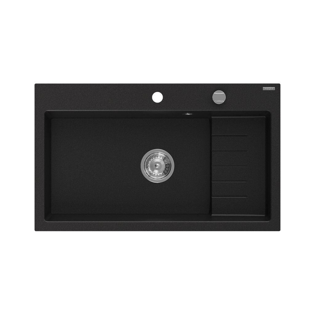 Mexen Omar, 1-komorový granitový drez 800x480x210 mm, čierny, chrómový sifón, 6520801005-77