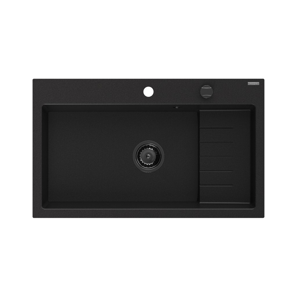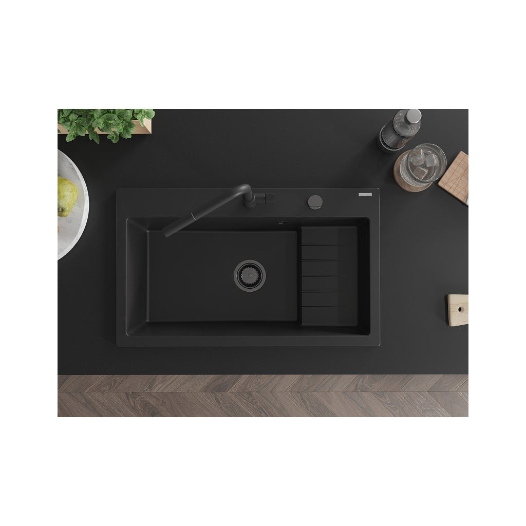 Mexen Omar, 1-komorový granitový drez 800x480x210 mm, čierny, grafitový sifón, 6520801005-77-B