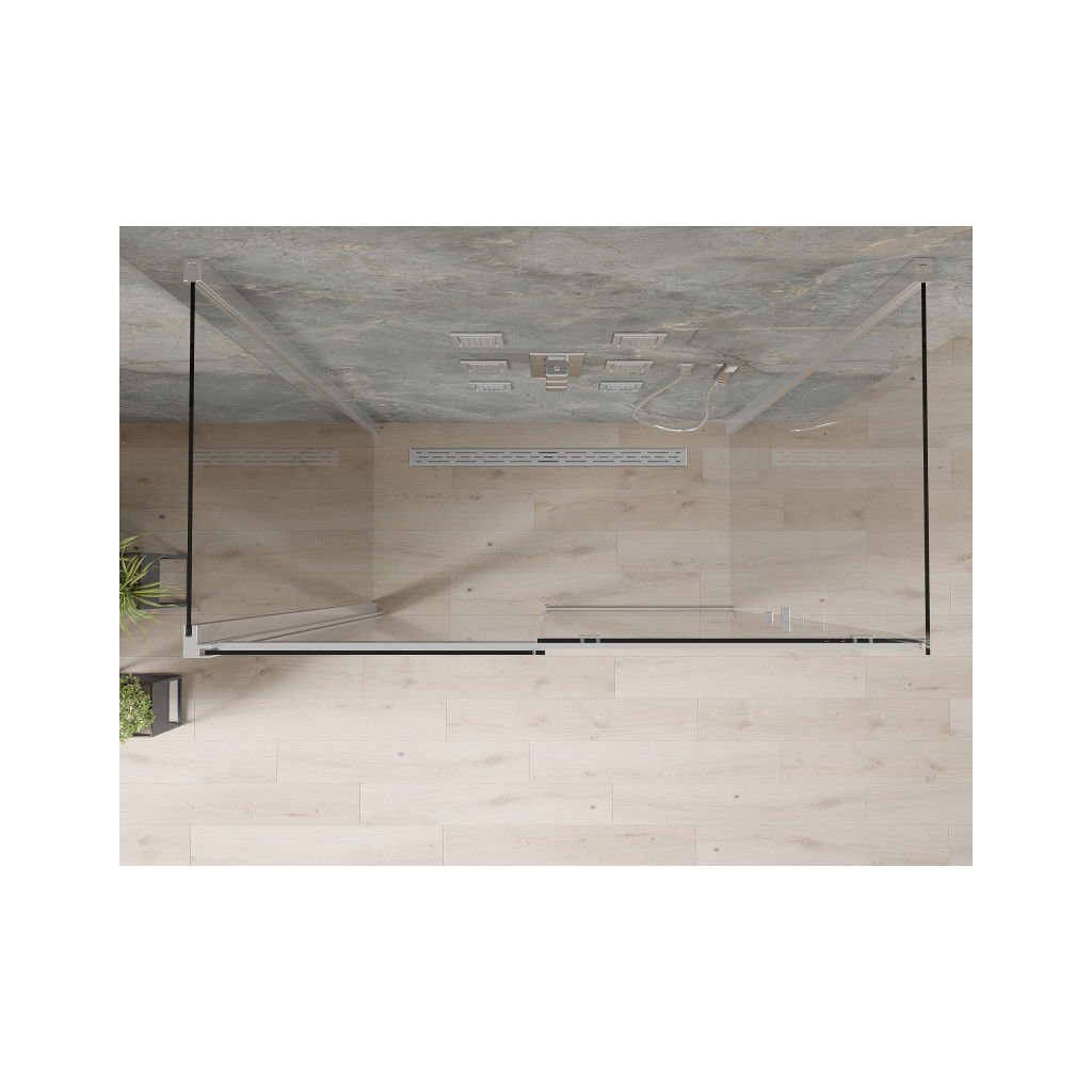 Skvelá voľba do každej kúpeľne. Exkluzívny sprchovací kút je vyrobený z 8 mm hrubého tvrdeného skla v čírom prevedení. Aplikovaná povrchová úprava skla (Easy-Clean) zaisťuje maximálny komfort všetkým užívateľom. Táto technológia zaručuje jedinečné vlastnosti zabraňujúce znečisteniu skla - povrch stačí iba opláchnuť vodou. Kút je uchytený v chrómovaných hliníkových profiloch a je vybavený tesnením zabraňujúcim úniku vody mimo sprchovací kút. Dvere sprchovacieho kúta sú posuvné (pojazdy s kvalitnými odolnými kolieskami). Na otváranie slúži elegantná kovová rukoväť.