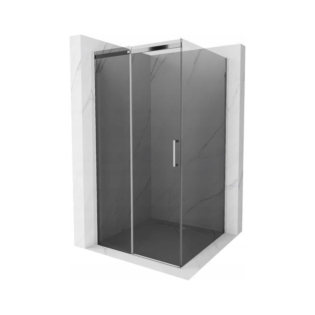 Mexen Omega, sprchovací kút s posuvnými dverami 100 (dvere) x 100 (stena) cm, 8mm sklo, chrómový profil-šedé sklo, 825-100-100-01-40