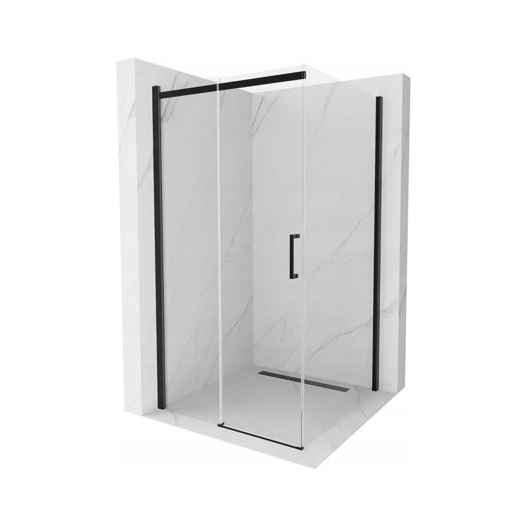 Mexen Omega, sprchovací kút s posuvnými dverami 100 (dvere) x 100 (stena) cm, 8mm sklo, čierny profil-číre sklo, 825-100-100-70-00