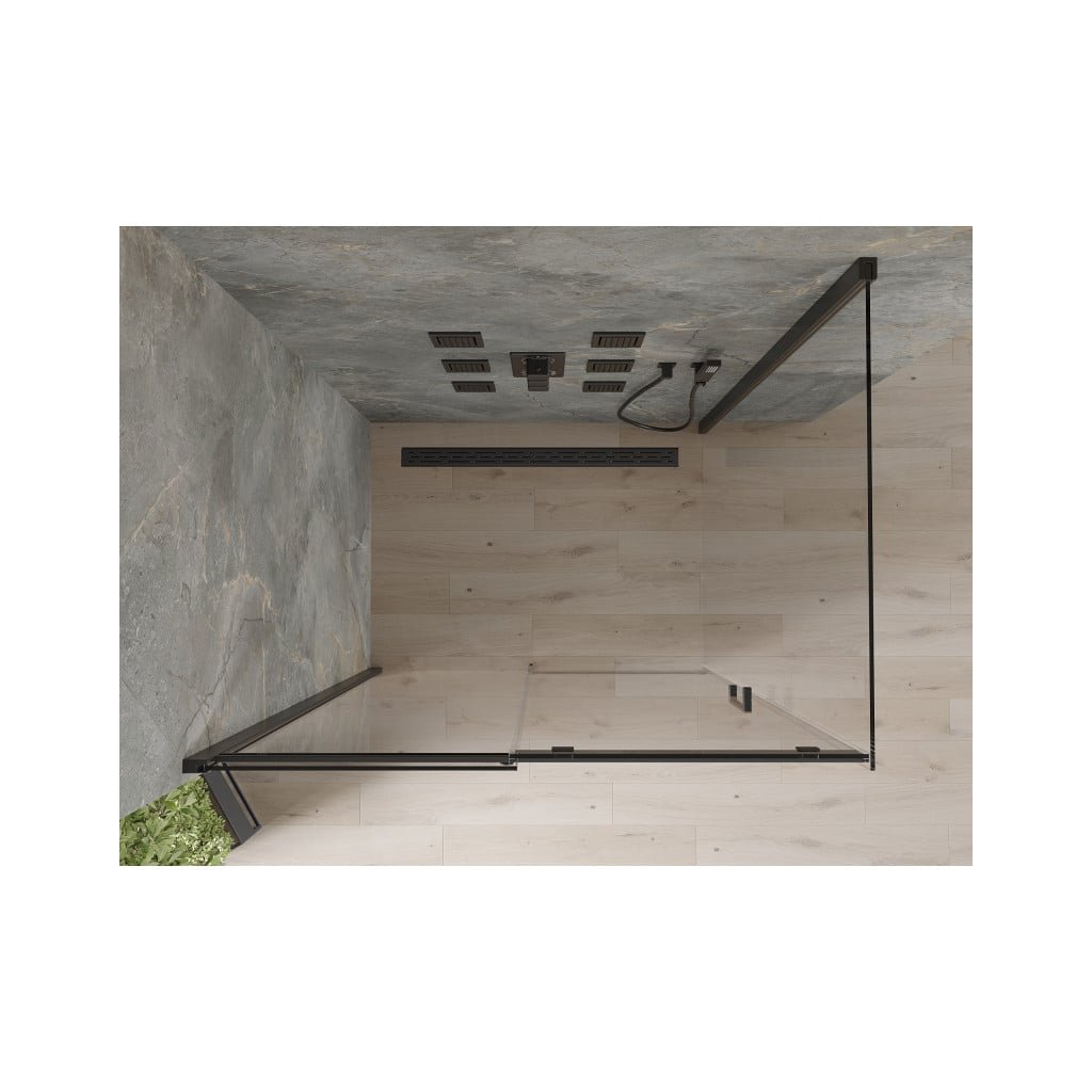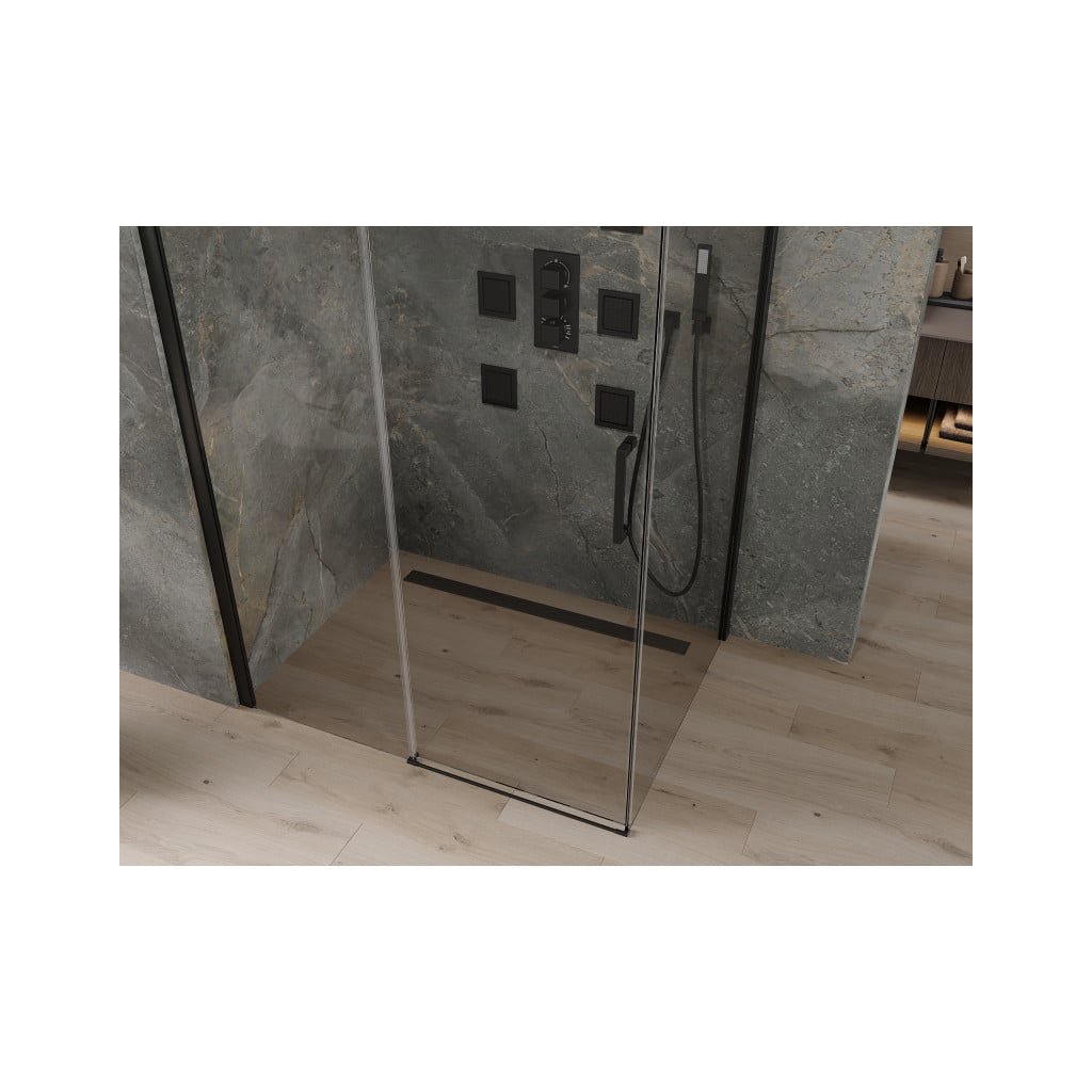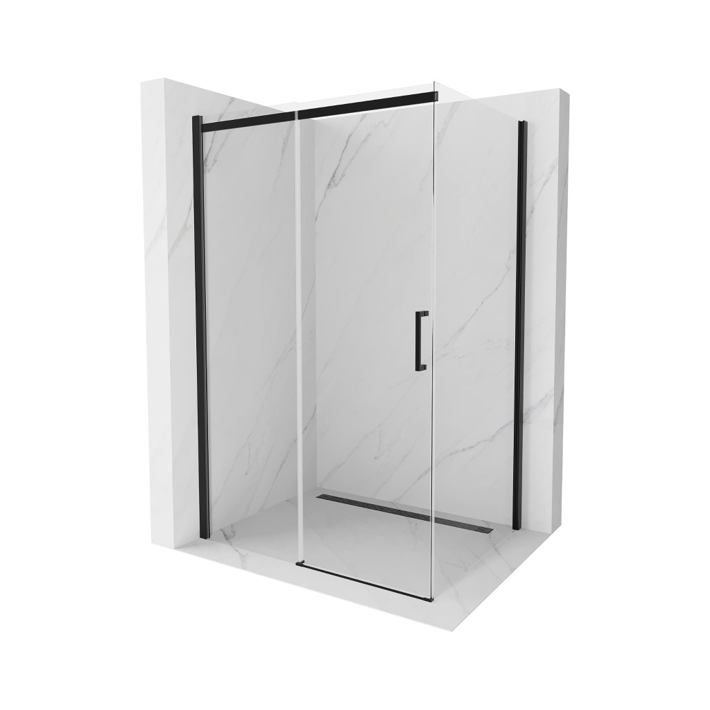 Mexen Omega, sprchovací kút s posuvnými dverami 110 (dvere) x 80 (stena) cm, 8mm sklo, čierny profil-číre sklo, 825-110-080-70-00