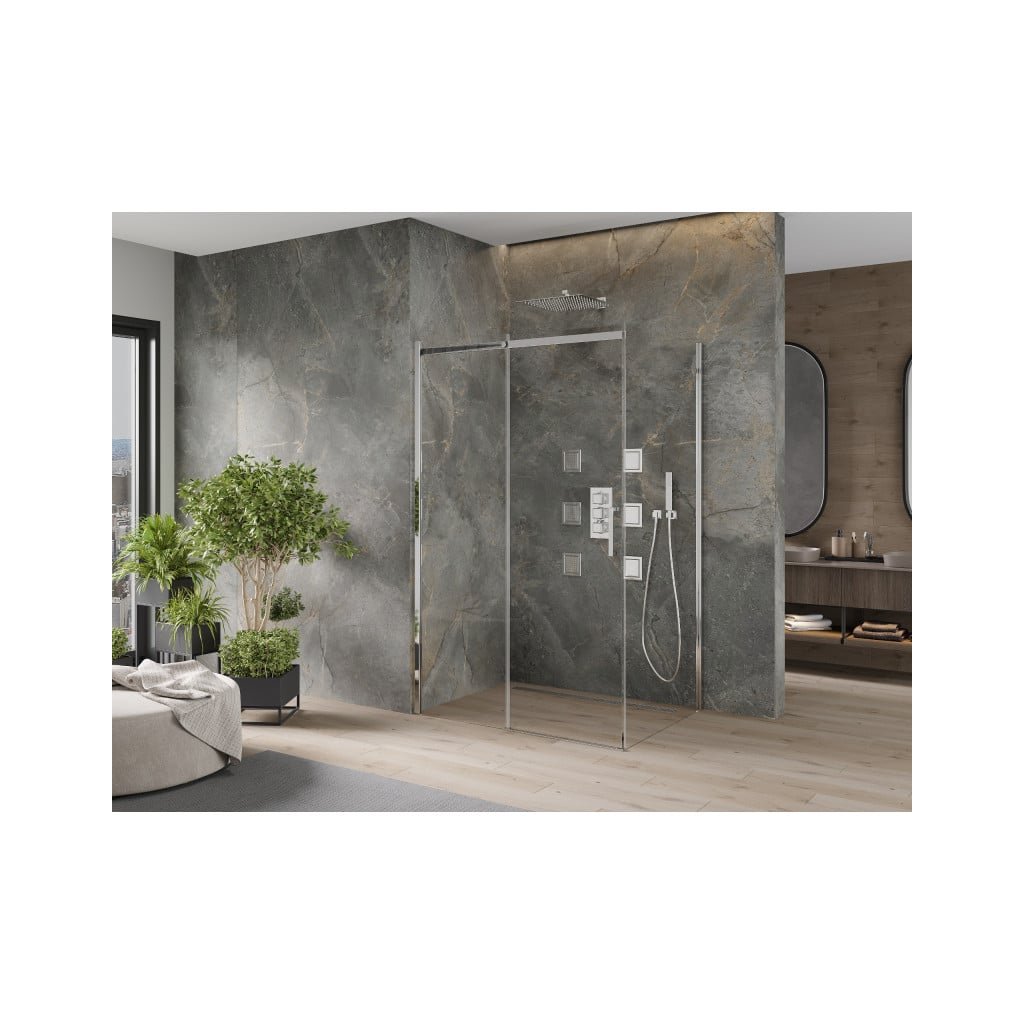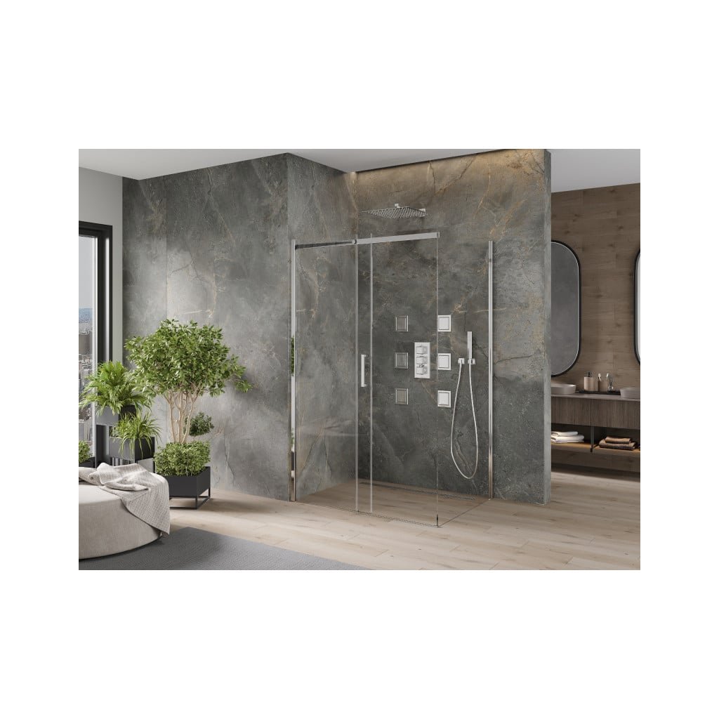 Mexen Omega, sprchovací kút s posuvnými dverami 130 (dvere) x 80 (stena) cm, 8mm číre sklo, chrómový profil, 825-130-080-01-00