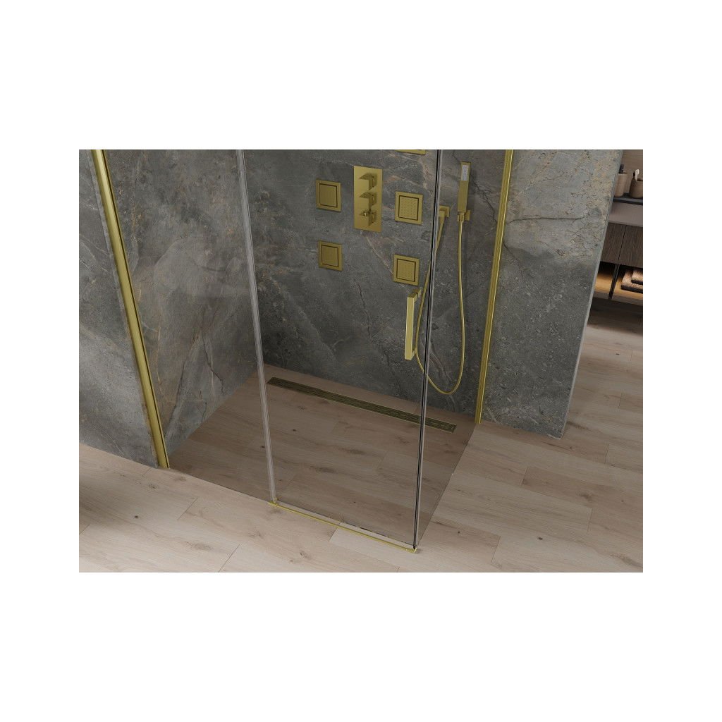 Mexen Omega, sprchovací kút s posuvnými dverami 130 (dvere) x 80 (stena) cm, 8mm sklo, zlatý profil-číre sklo, 825-130-080-50-00