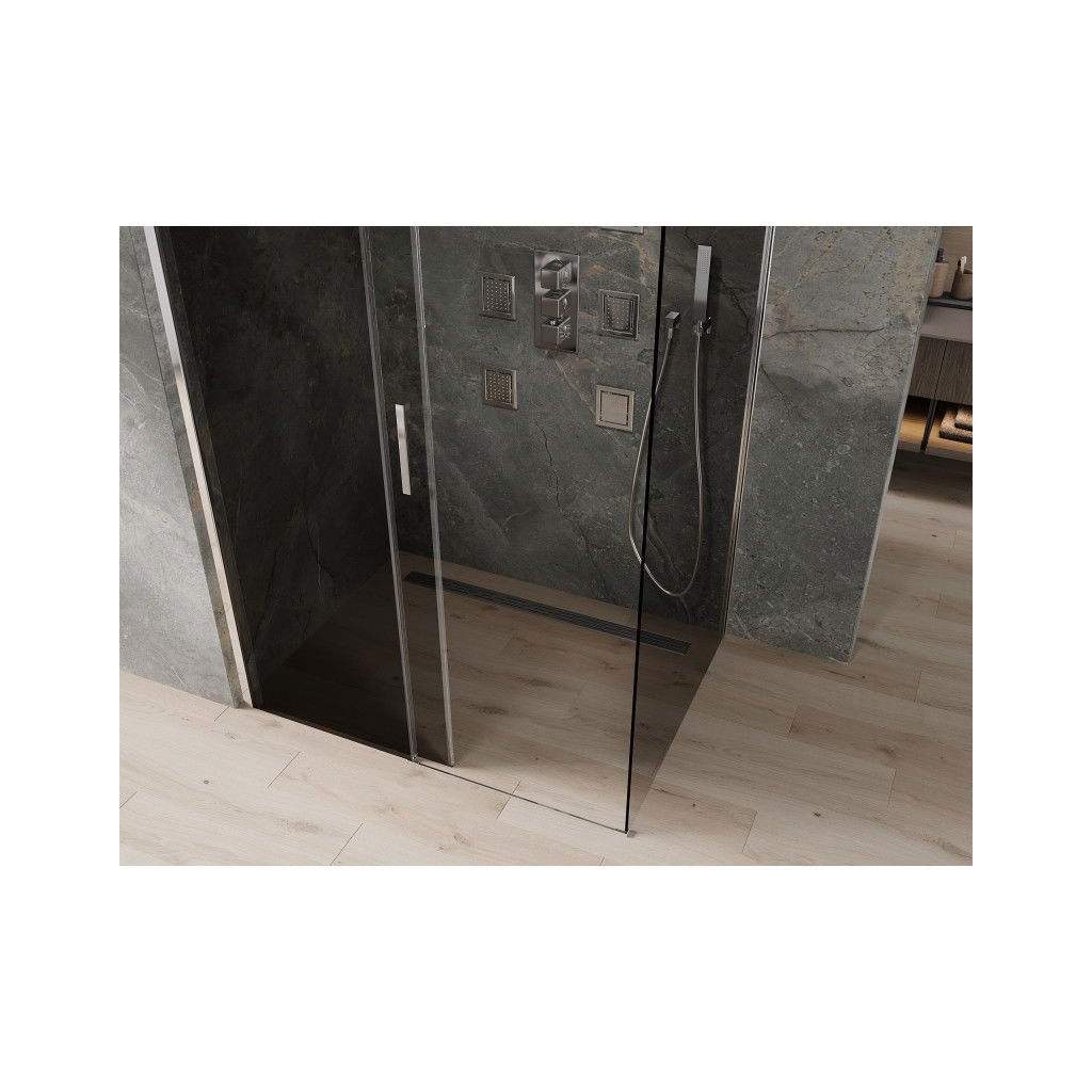 Mexen Omega, sprchovací kút s posuvnými dverami 130 (dvere) x 90 (stena) cm, 8mm sklo, chrómový profil-šedé sklo, 825-130-090-01-40
