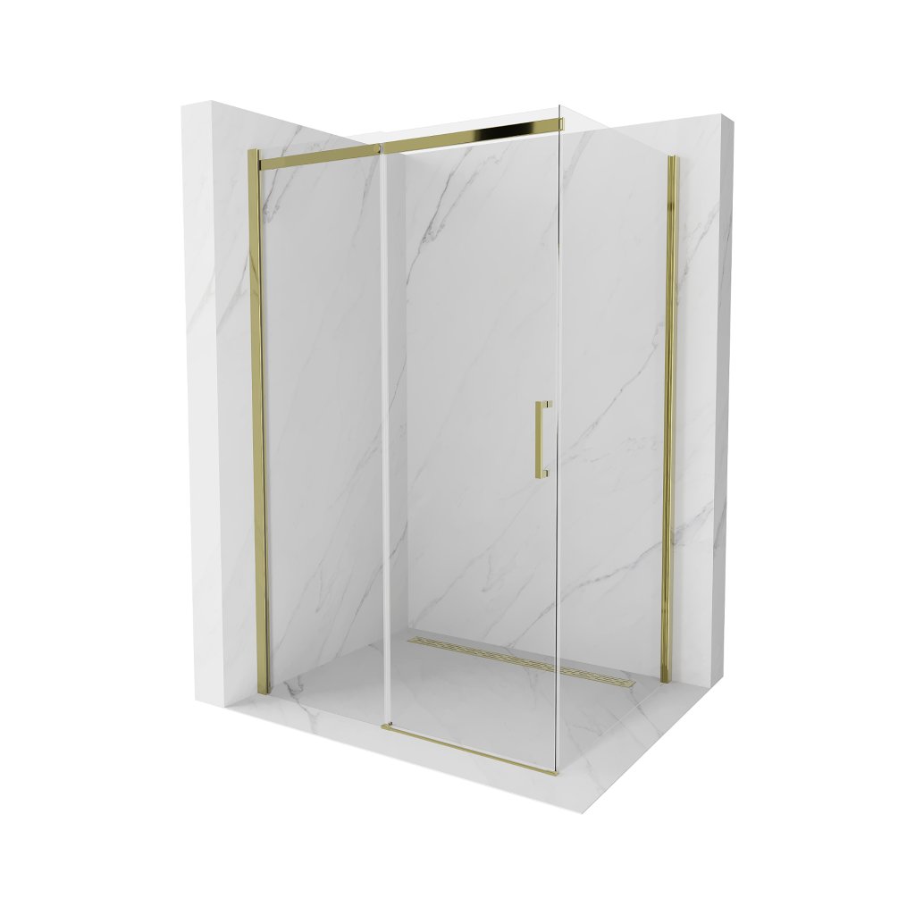 Mexen Omega, sprchovací kút s posuvnými dverami 140 (dvere) x 90 (stena) cm, 8mm sklo, zlatý profil-číre sklo, 825-140-090-50-00