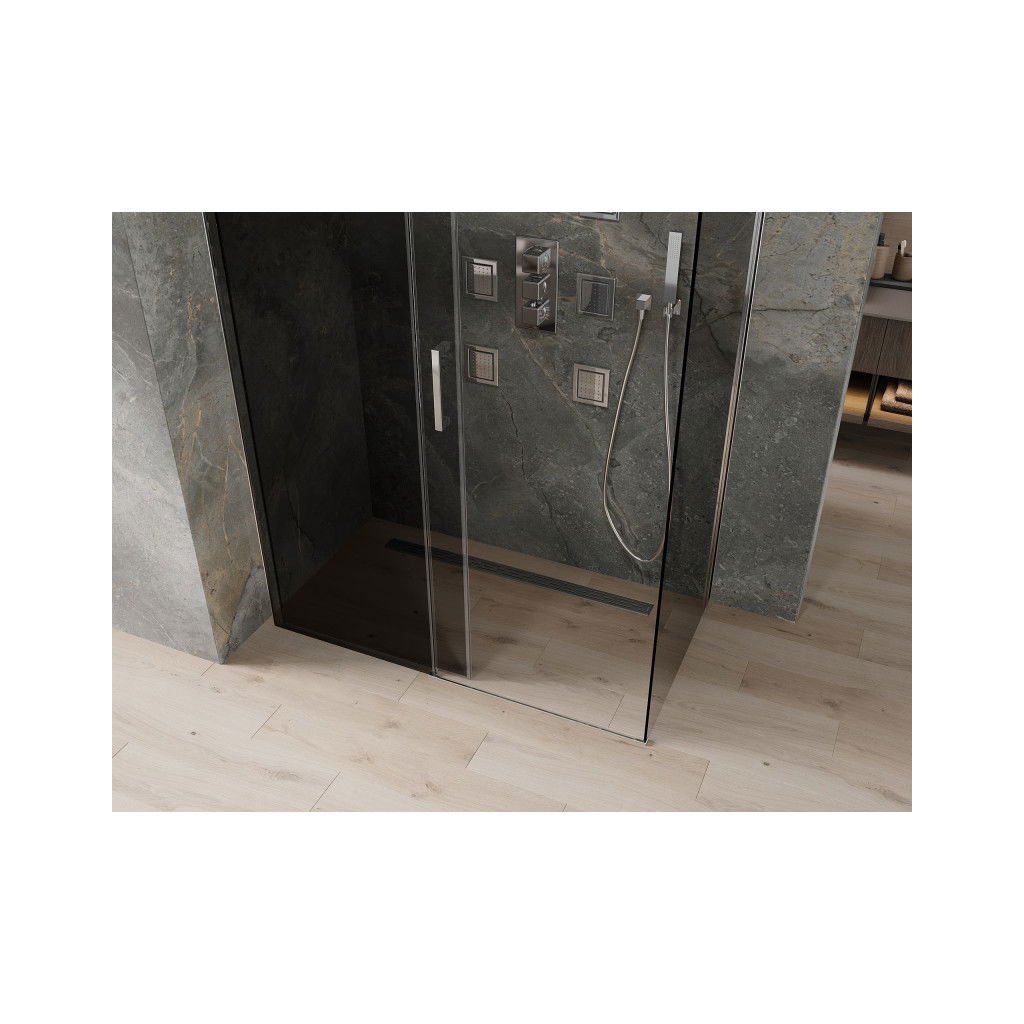 Mexen Omega, sprchovací kút s posuvnými dverami 160 (dvere) x 90 (stena) cm, 8mm sklo, chrómový profil-šedé sklo, 825-160-090-01-40