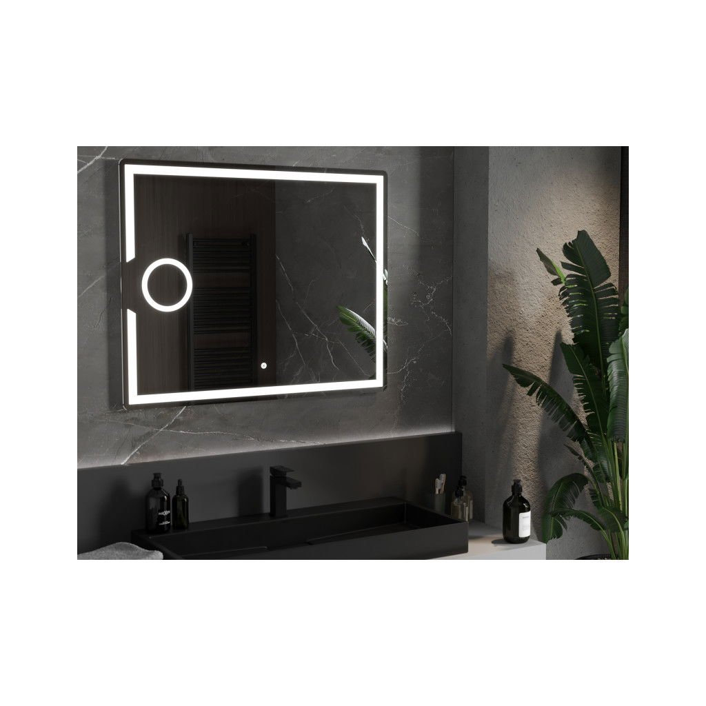Mexen Onyx, LED kúpeľňové zrkadlo s podsvietením a kozmetickým zrkadielkom 100x80 cm, 6000K, ochrana proti zahmlievaniu, 9813-100-080-611-00