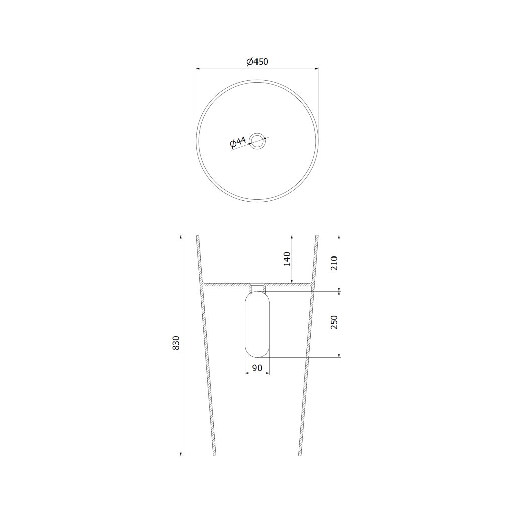 Mexen Onyx-01, voľnestojace umývadlo z konglomerátu 45x45x83 cm, biela matná, 26524500
