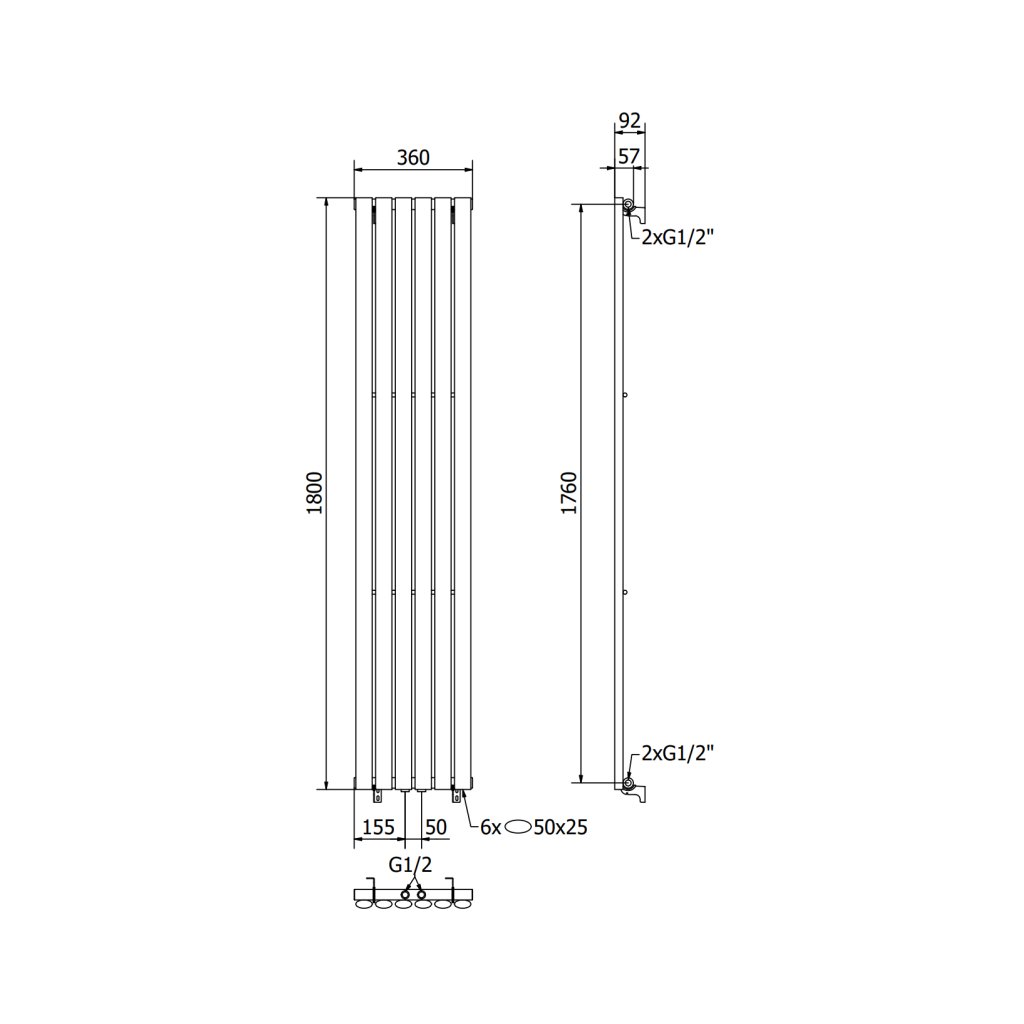 Mexen Oregon, vykurovacie teleso 1800x360 mm, 604 W, antracitová, W202-1800-350-00-66