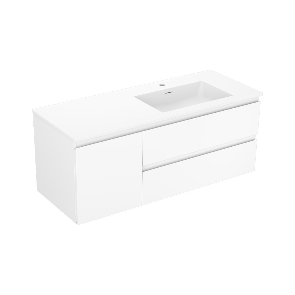 Mexen Orio, kúpeľňová skrinka 120 cm s pravým umývadlom Otis, 2S, 1D, biela matná, 91A13-12047-3-BBFFF01-W18P01