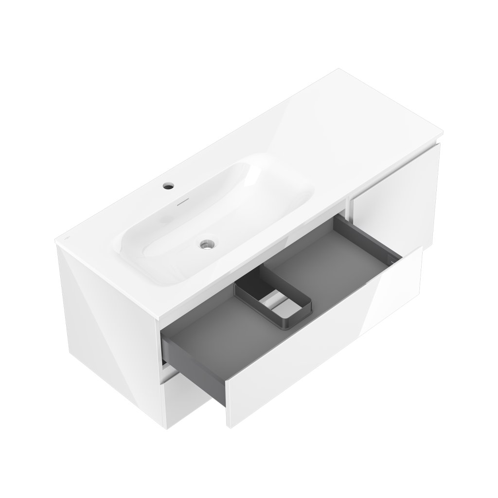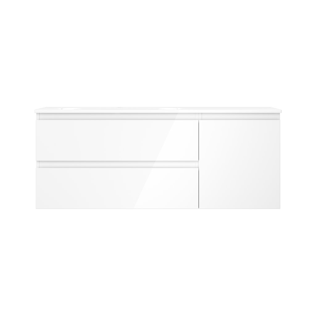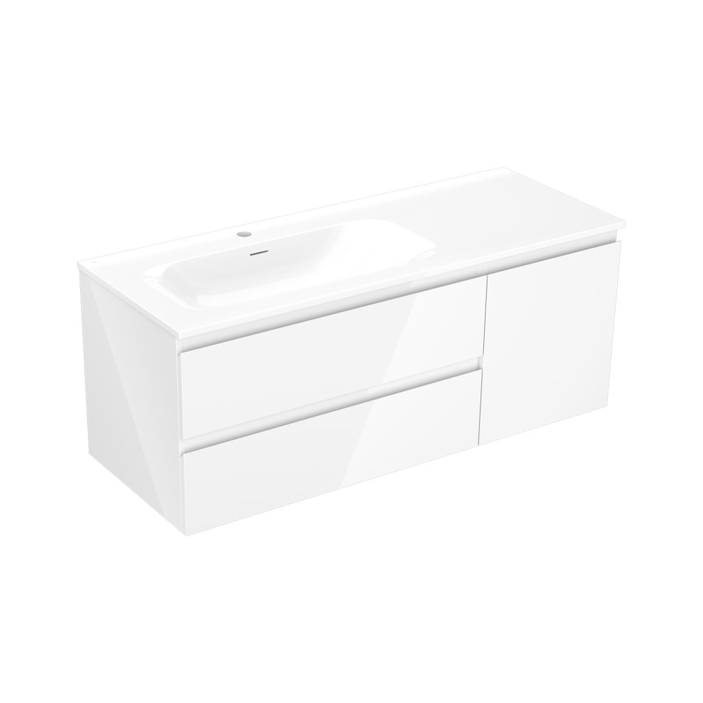 Mexen Orio, kúpeľňová skrinka 120 cm s umývadlom Vela vľavo, 2S, 1D, biela lesklá, 91A13-12047-3-BBFFF00-W23L00