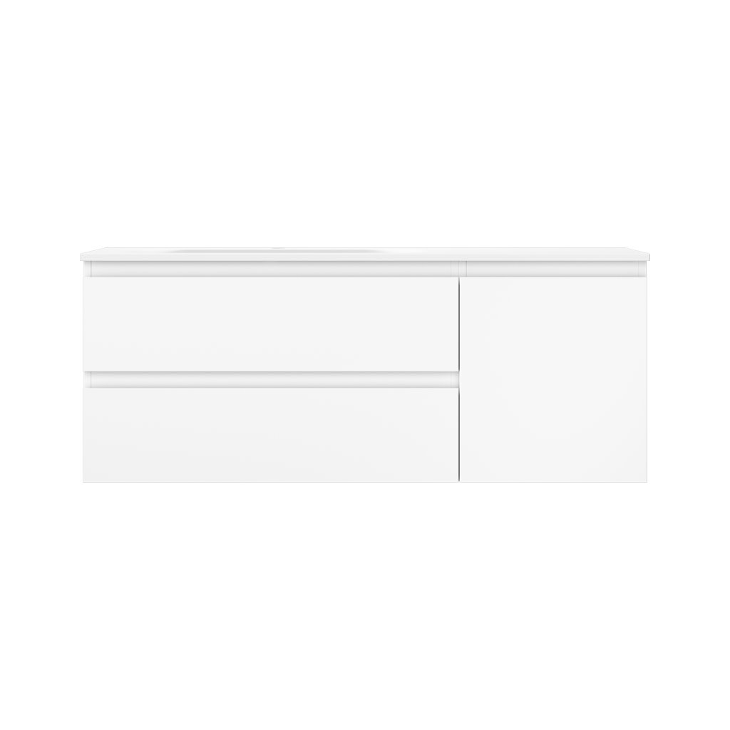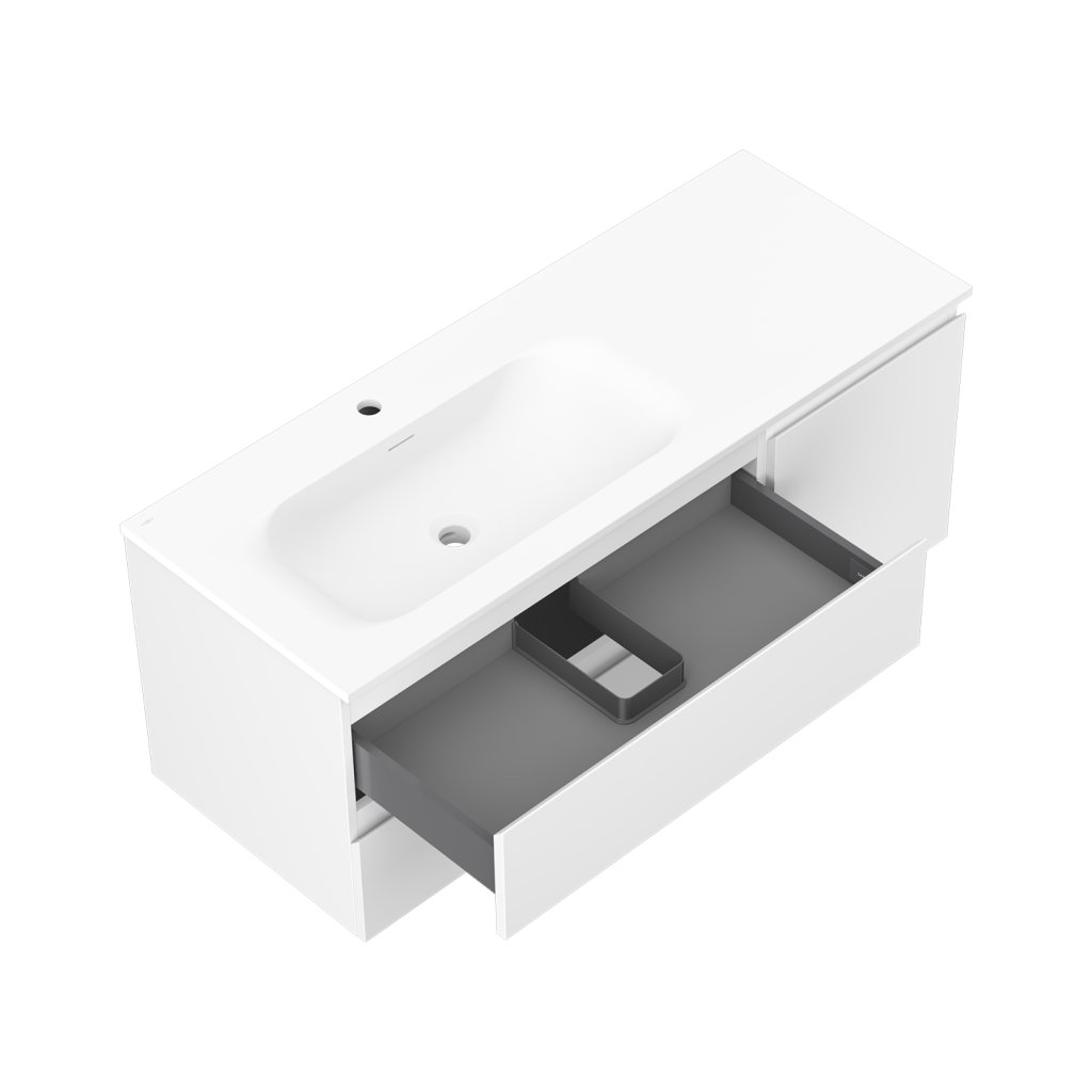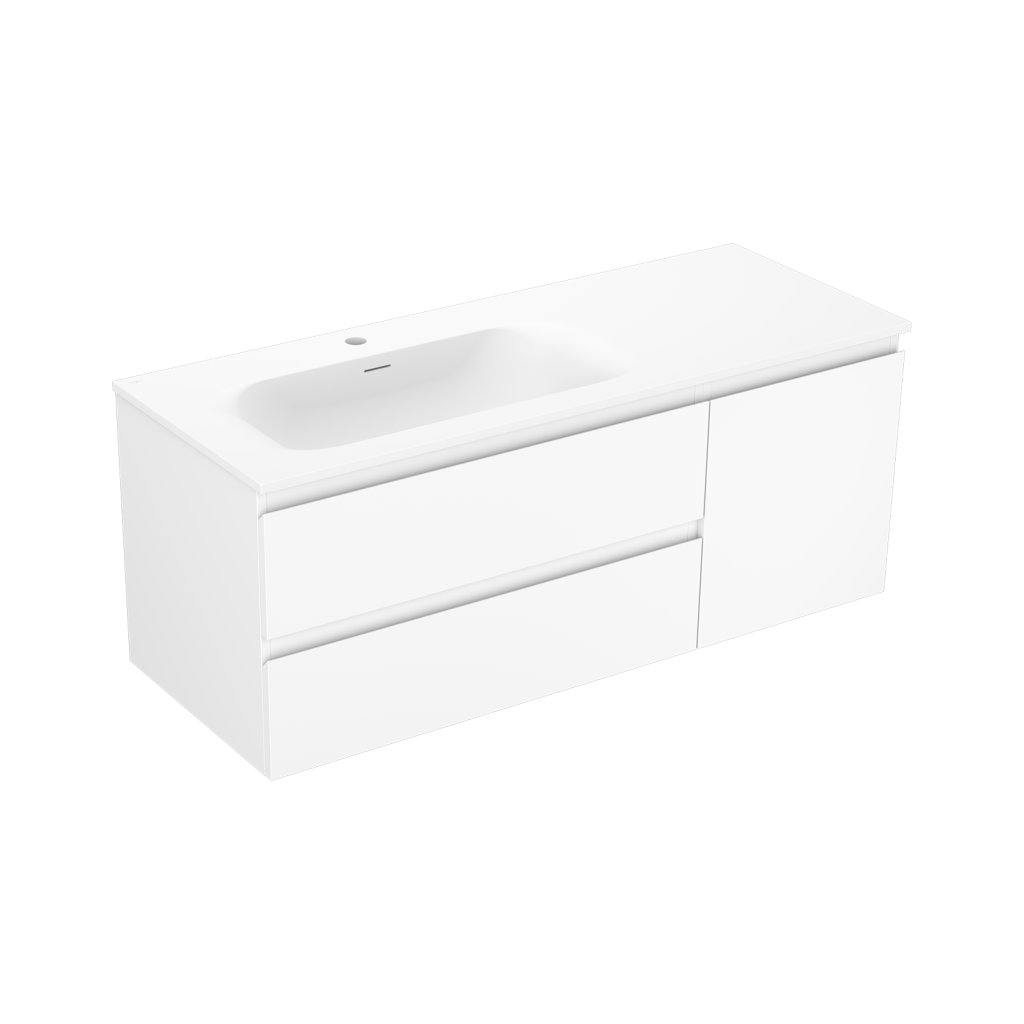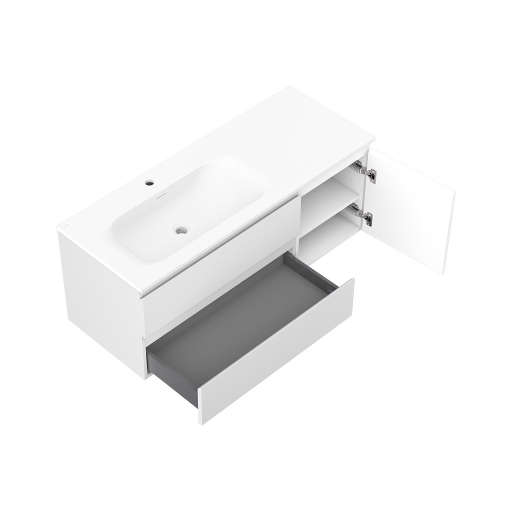 Mexen Orio, kúpeľňová skrinka 120 cm s umývadlom Vela vľavo, 2S, 1D, biela matná, 91A13-12047-3-BBFFFF01-W23L01