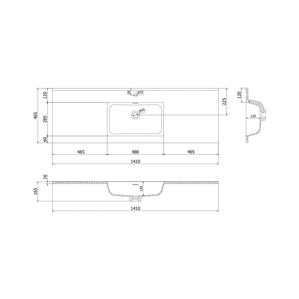 Mexen Orio, kúpeľňová skrinka 140 cm s umývadlom Otis, 2 zásuvky, biela matná, 91A10-14047-2-BFF01-W18M01