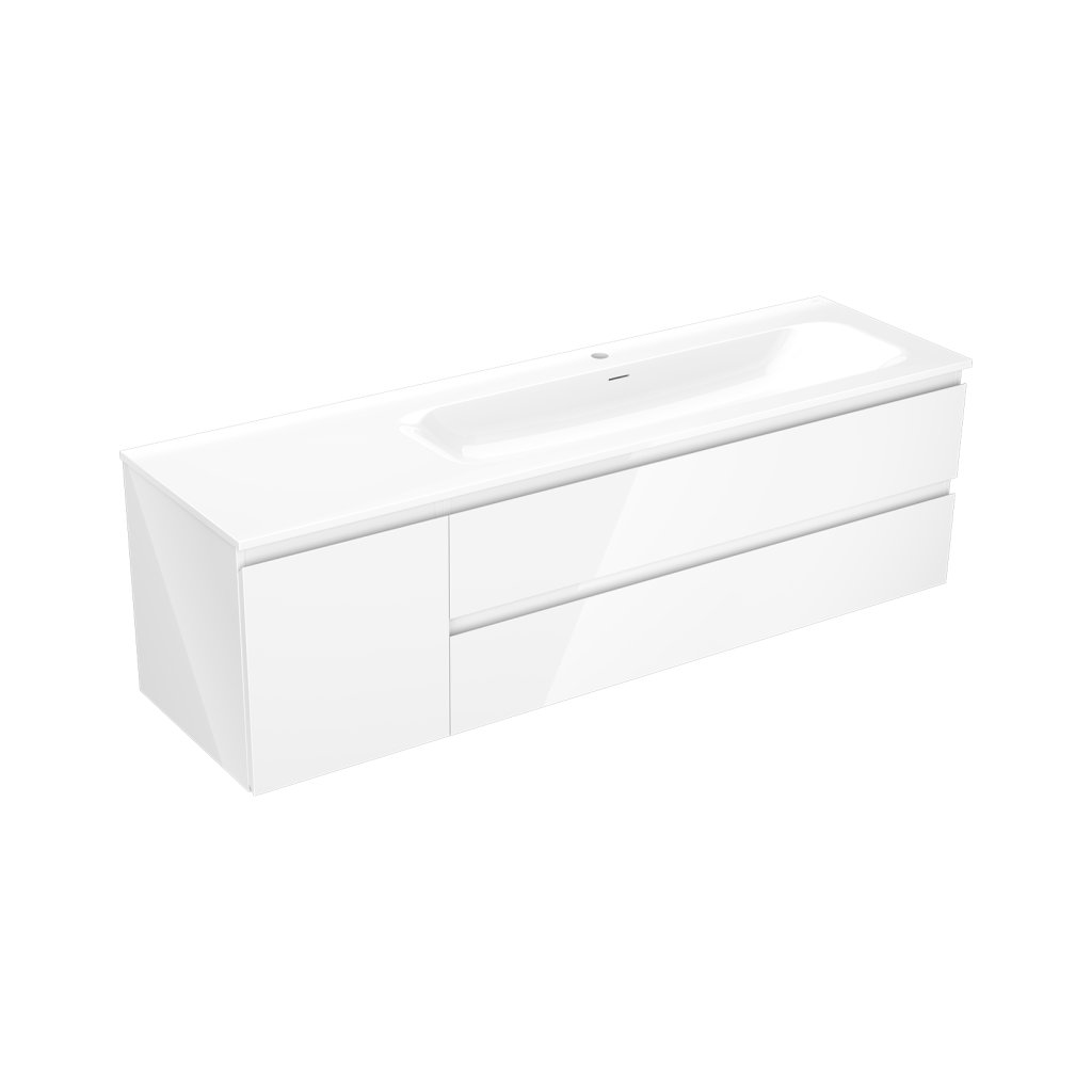Mexen Orio, kúpeľňová skrinka 160 cm s pravým umývadlom Vela, 2S, 1D, biela lesklá, 91A13-16047-3-BBFFF00-W23P00
