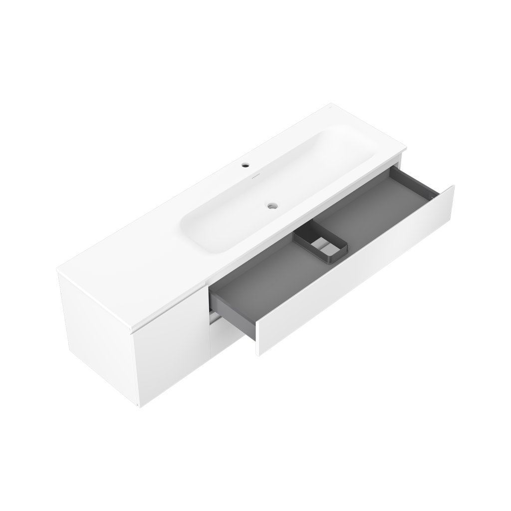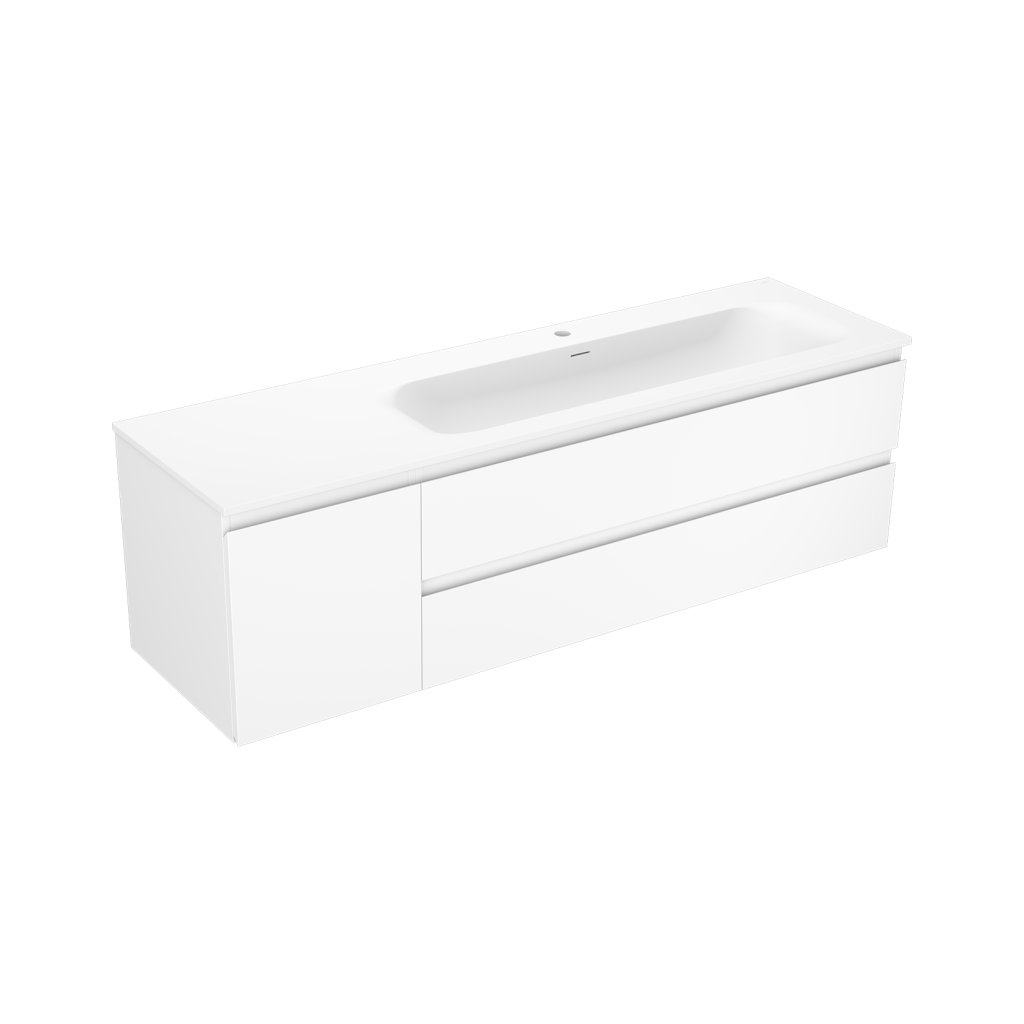 Mexen Orio, kúpeľňová skrinka 160 cm s pravým umývadlom Vela, 2S, 1D, biela matná, 91A13-16047-3-BBFFFF01-W23P01