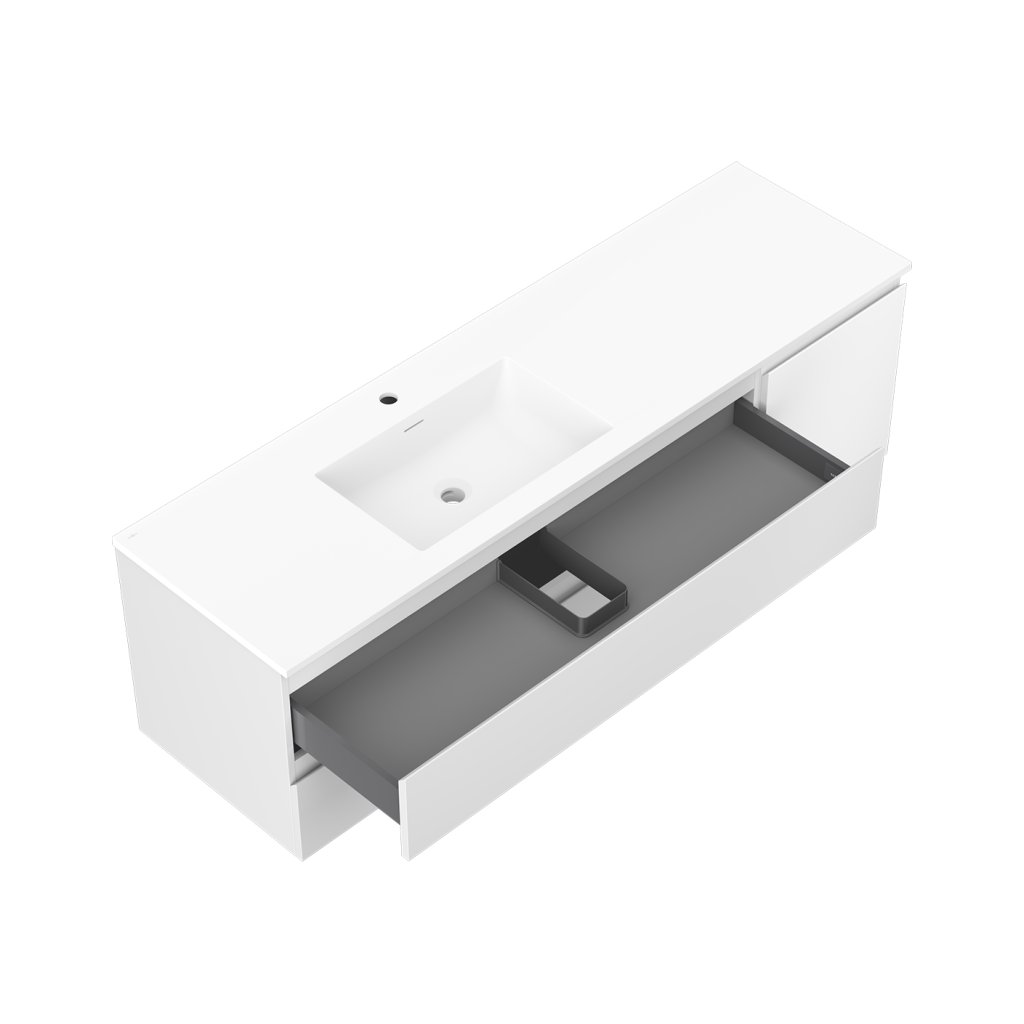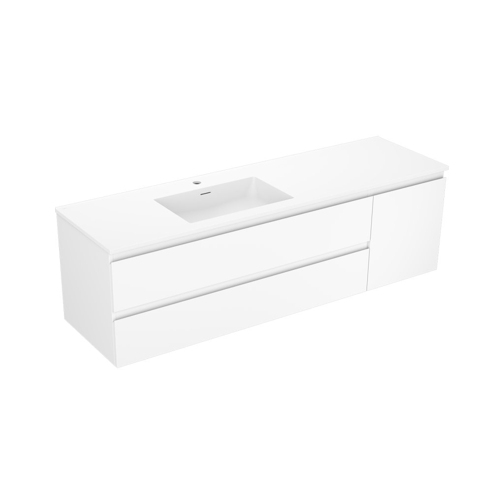Mexen Orio, kúpeľňová skrinka 160 cm s umývadlom Otis vľavo, 2S, 1D, biela matná, 91A13-16047-3-BBFFF01-W18L01