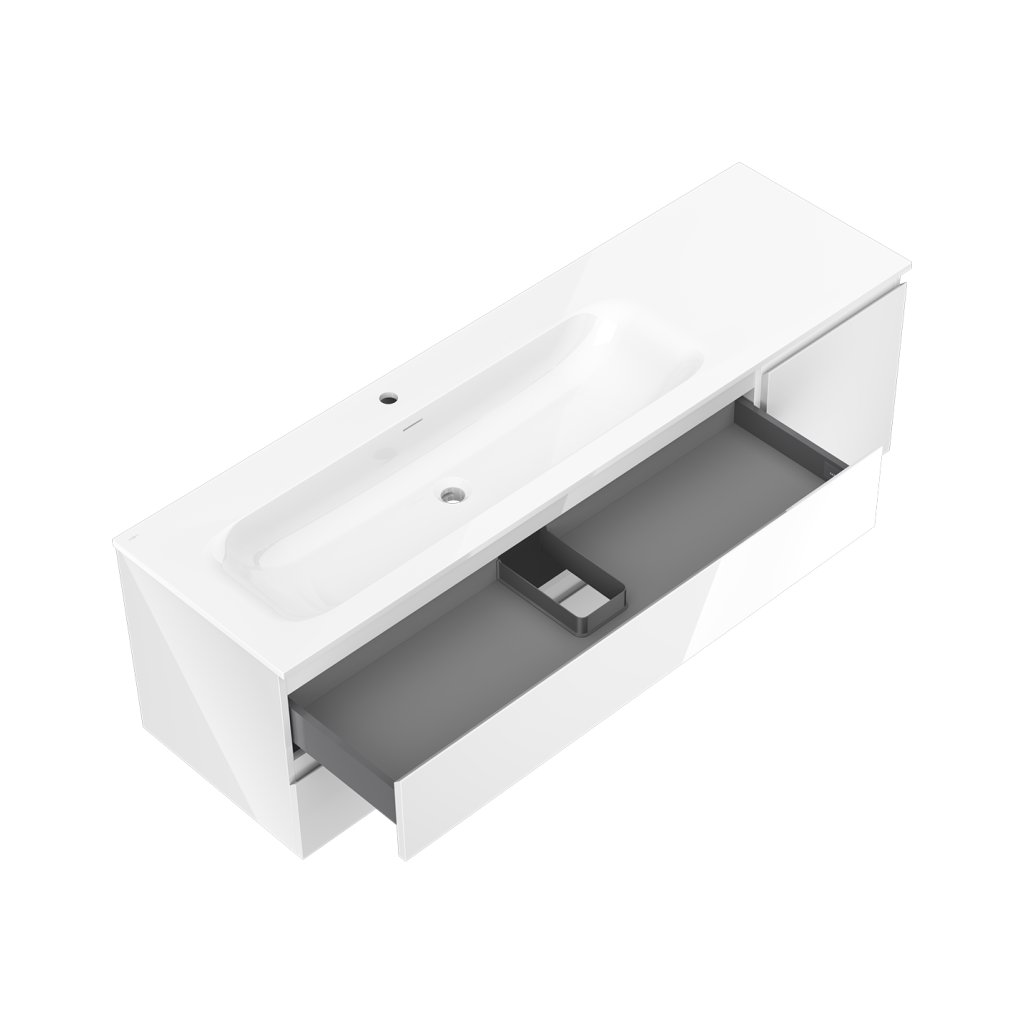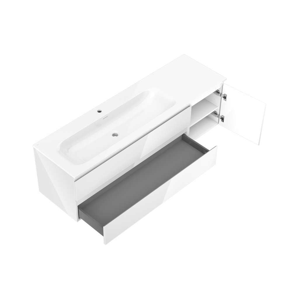 Mexen Orio, kúpeľňová skrinka 160 cm s umývadlom Vela vľavo, 2S, 1D, biela lesklá, 91A13-16047-3-BBFFF00-W23L00