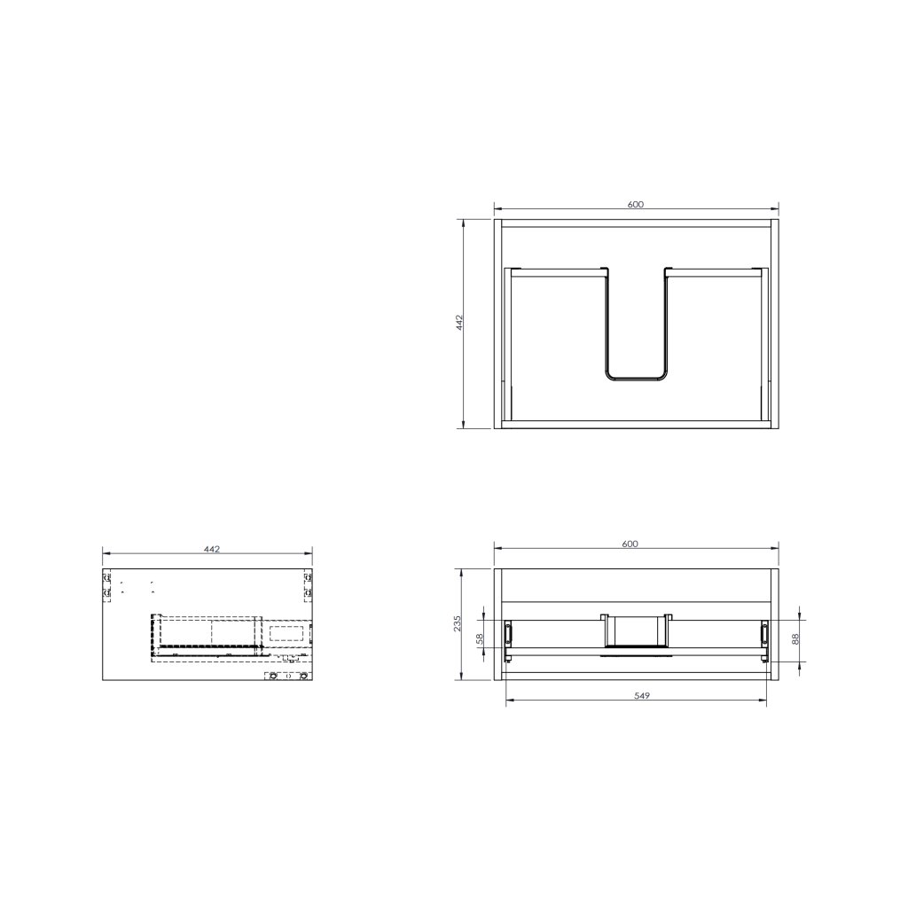 Zmontovaný výrobok: 1 Priestranná zásuvka s tichým zatváraním Plný výsuv pre ľahký prístup k obsahu zásuvky Povrch odolný voči UV žiareniu