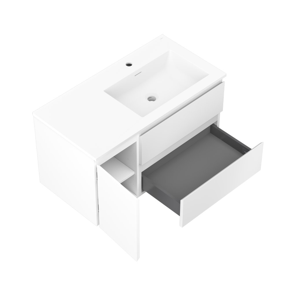 Mexen Orio, kúpeľňová skrinka 90 cm s pravým umývadlom Otis, 2S, 1D, biela matná, 91A13-09047-3-BBFFF01-W18P01