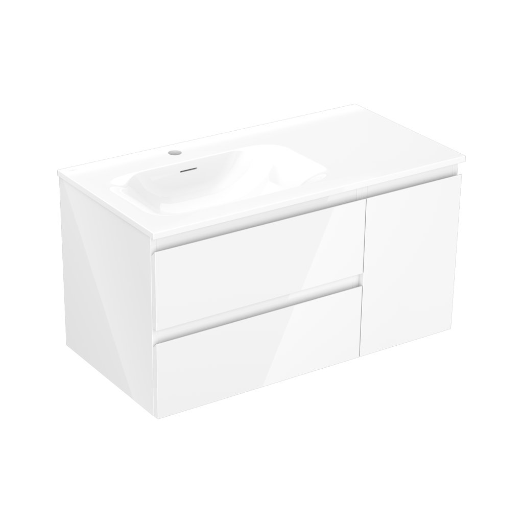 Mexen Orio, kúpeľňová skrinka 90 cm s umývadlom Vela ľavá, 2S, 1D, biela lesklá, 91A13-09047-3-BBFFF00-W23L00