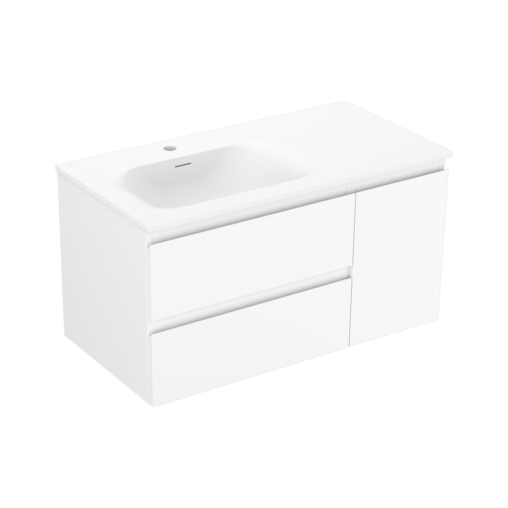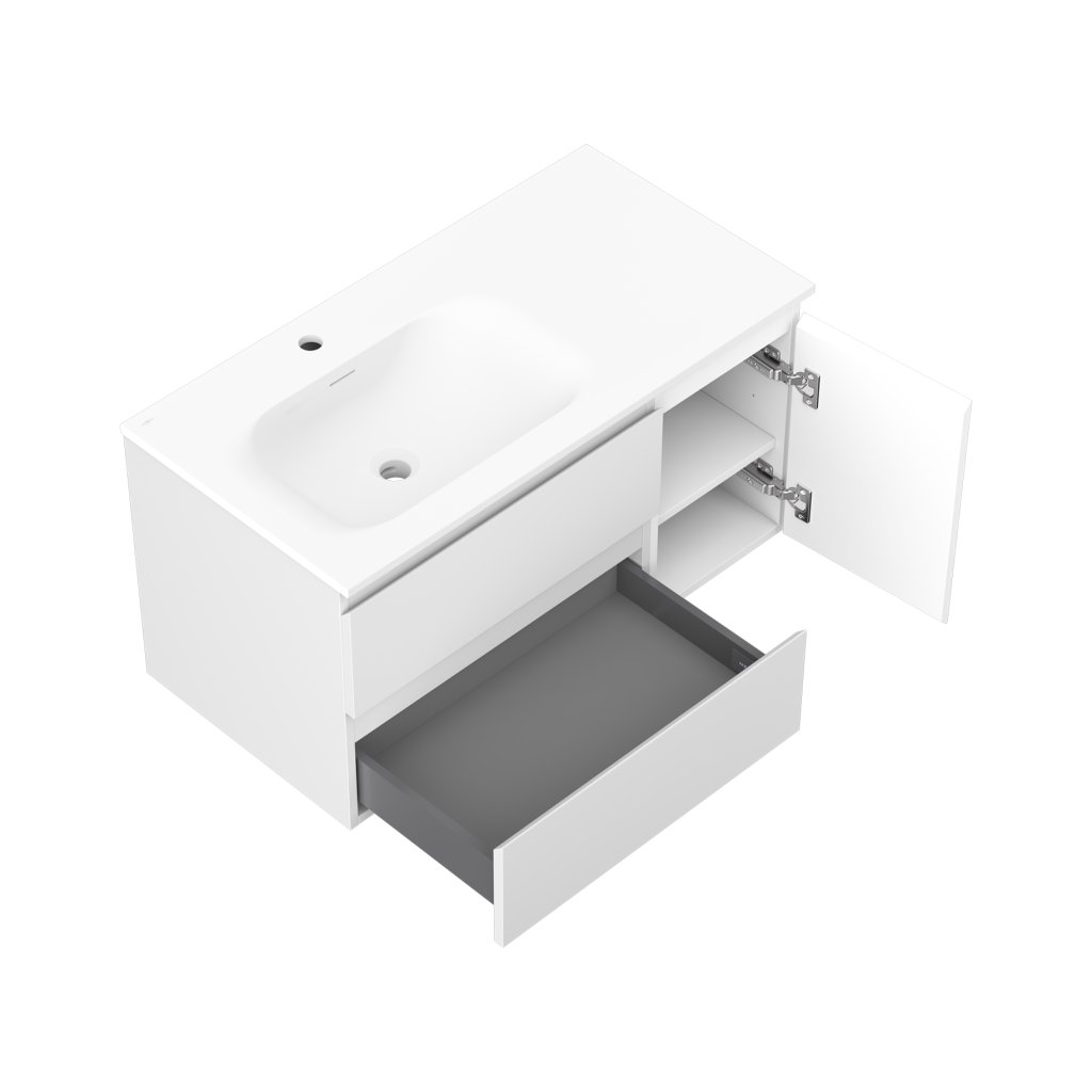 Mexen Orio, kúpeľňová skrinka 90 cm s umývadlom Vela vľavo, 2S, 1D, biela matná, 91A13-09047-3-BBFFFF01-W23L01