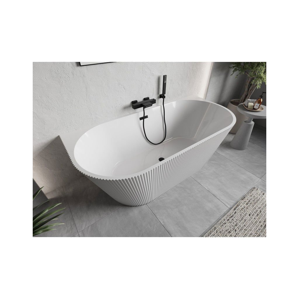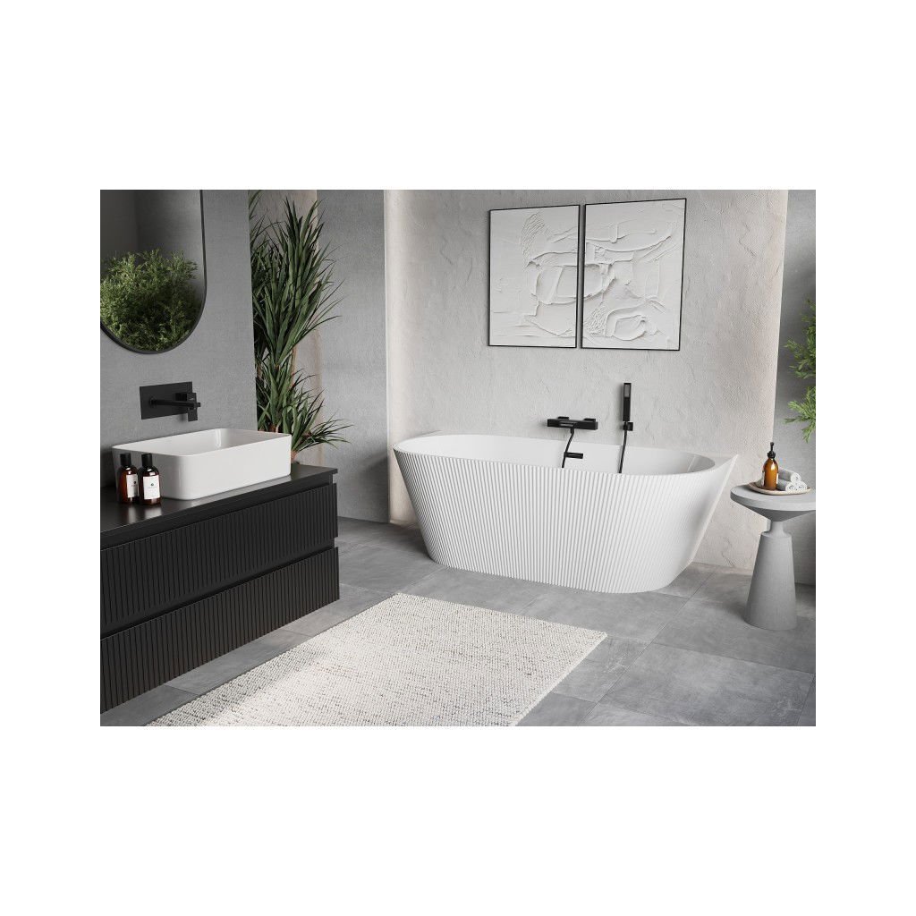 Mexen Oris, voľne stojaca ryhovaná vaňa 150 x 75 cm, biela lesklá, čierny matný prepad, 52871507500-70