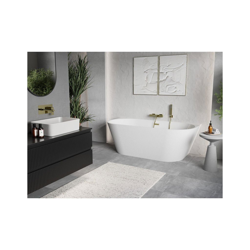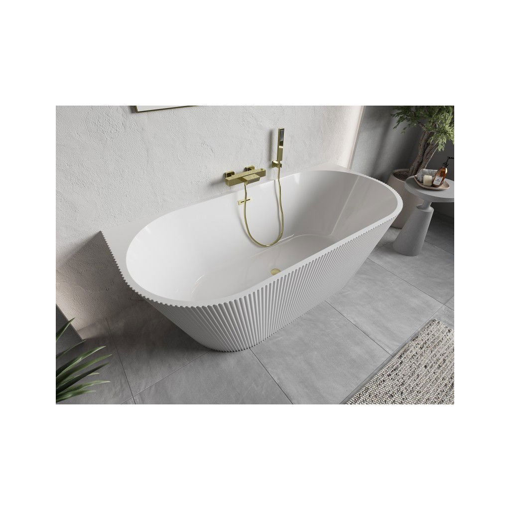 Mexen Oris, voľne stojaca ryhovaná vaňa 150 x 75 cm, biela lesklá, zlatý matný prepad, 52871507500-55