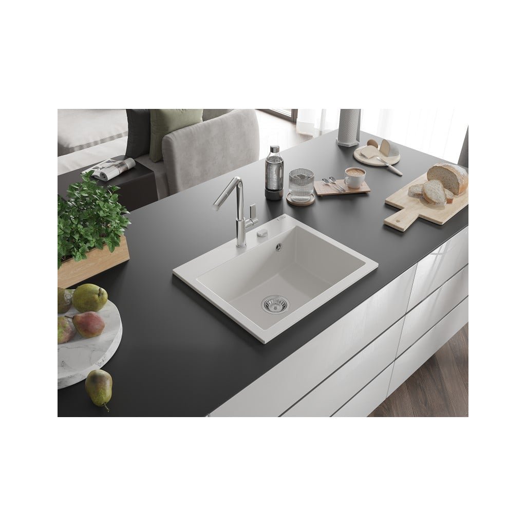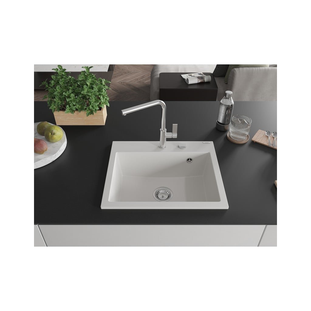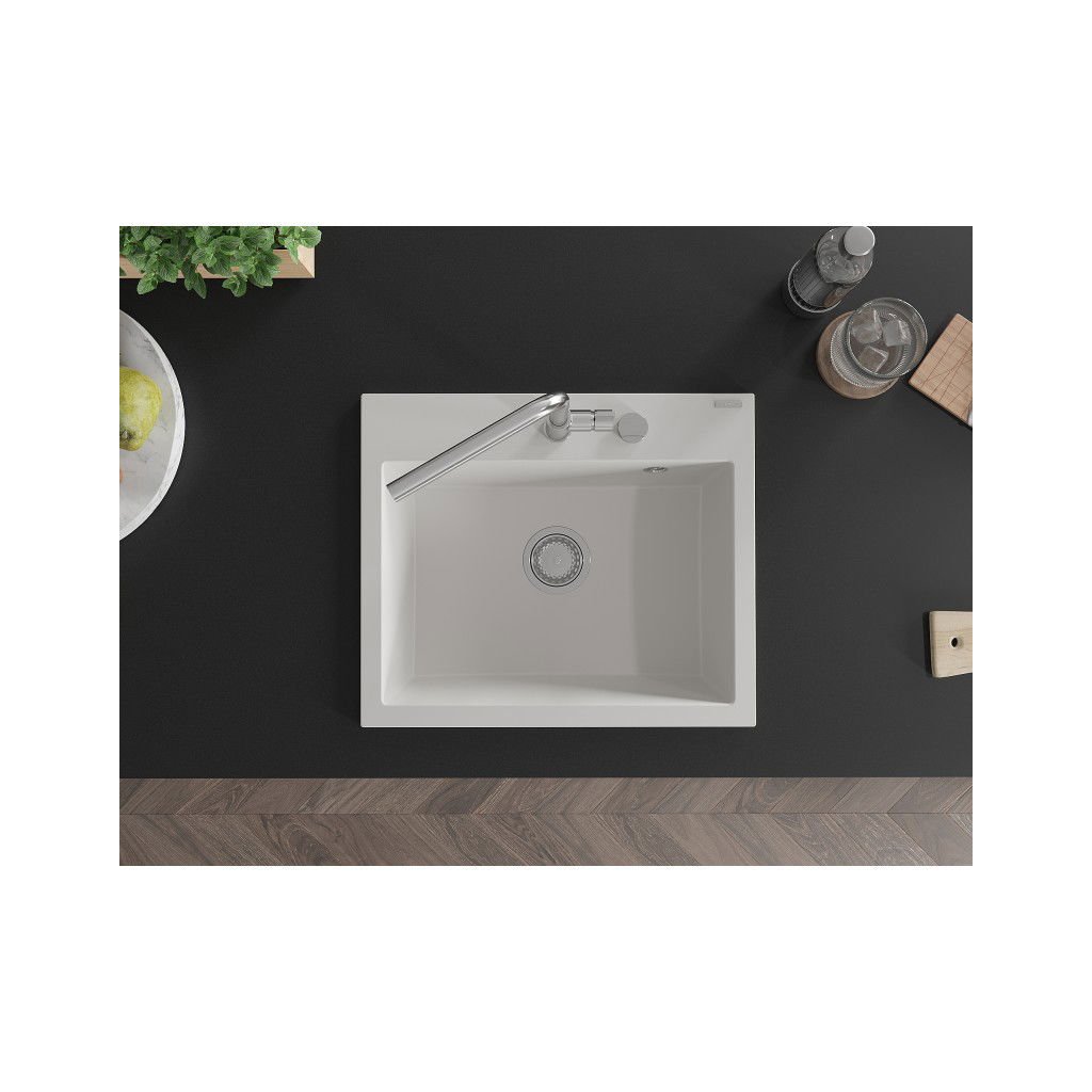 Mexen Oscar, 1-komorový granitový drez 580x490x205 mm, biela, 6519581000-20