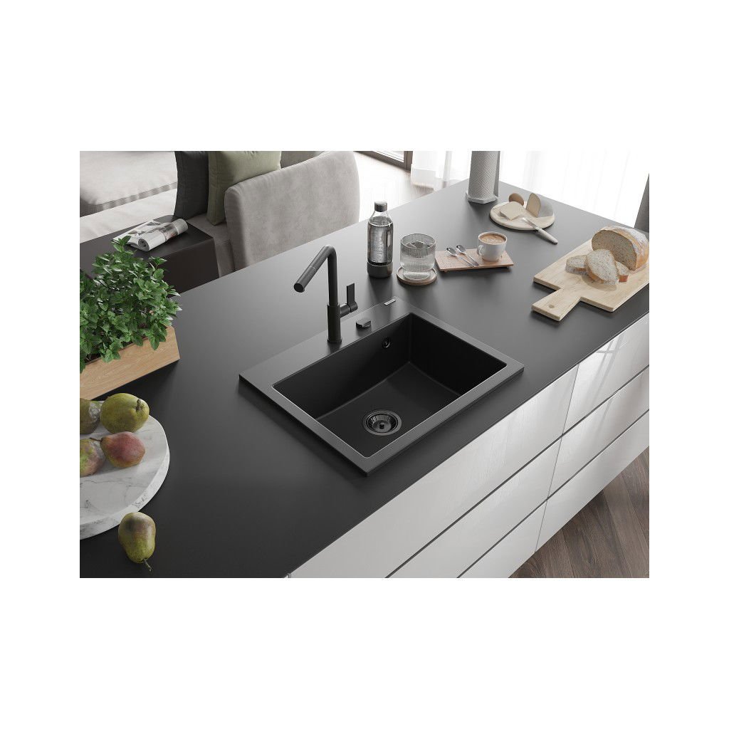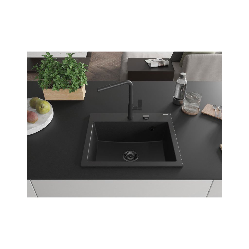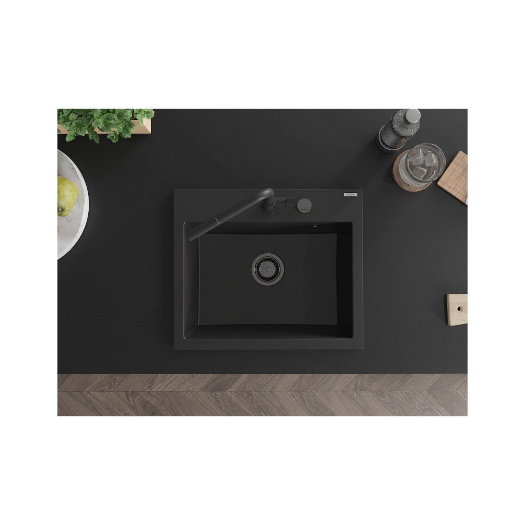 Mexen Oscar, 1-komorový granitový drez 580x490x205 mm, čierna, 6519581000-77-B