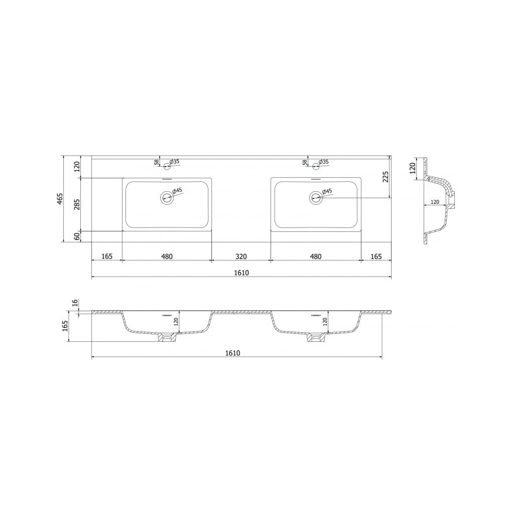Mexen Otis, dvojité umývadlo zapustené do dosky 161 × 46,5 cm, biela matná, 25181601D