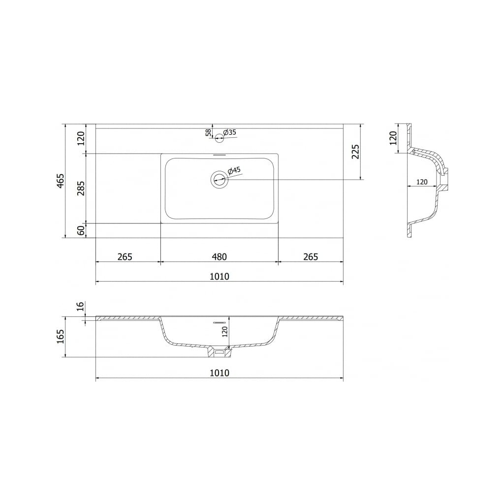 Technické údaje: Rozmery: 101x46,5x16,8 cm Hĺbka: 11,9 cm Typ: Zapustenie do dosky Farba: Biely lesk Materiál: Konglomerát Prepadový otvor: Áno Otvor na batériu: ÁnoDodatočné parametre