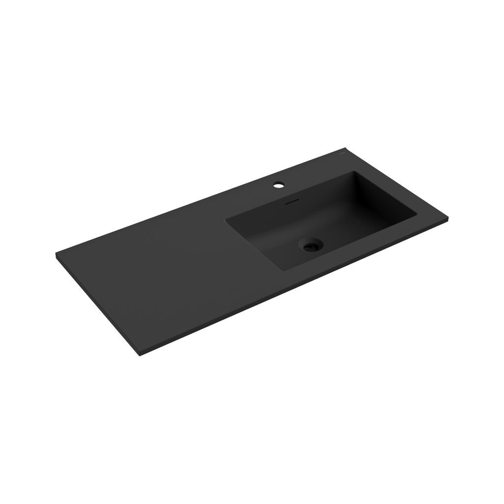 Technické údaje: Rozmery: 101x46,5x16,8 cm Hĺbka: 11,9 cm Typ: Na zapustenie, pravostranný Farba: Čierna matná Materiál: Konglomerát Prepadový otvor: Áno Otvor na batériu: ÁnoDodatočné parametre