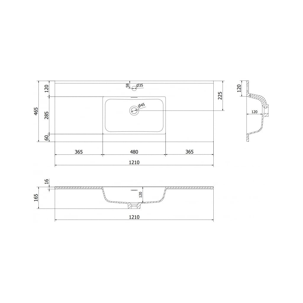 Technické údaje: Rozmery: 121x46,5x16,8 cm Hĺbka: 11,9 cm Typ: Zapustenie do dosky Farba: Biely lesk Materiál: Konglomerát Prepadový otvor: Áno Otvor na batériu: ÁnoDodatočné parametre