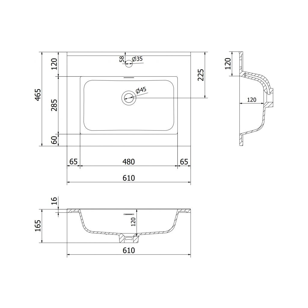 Mexen Otis, umývadlo na zapustenie 61 x 46,5 cm, biela lesklá, 25186000