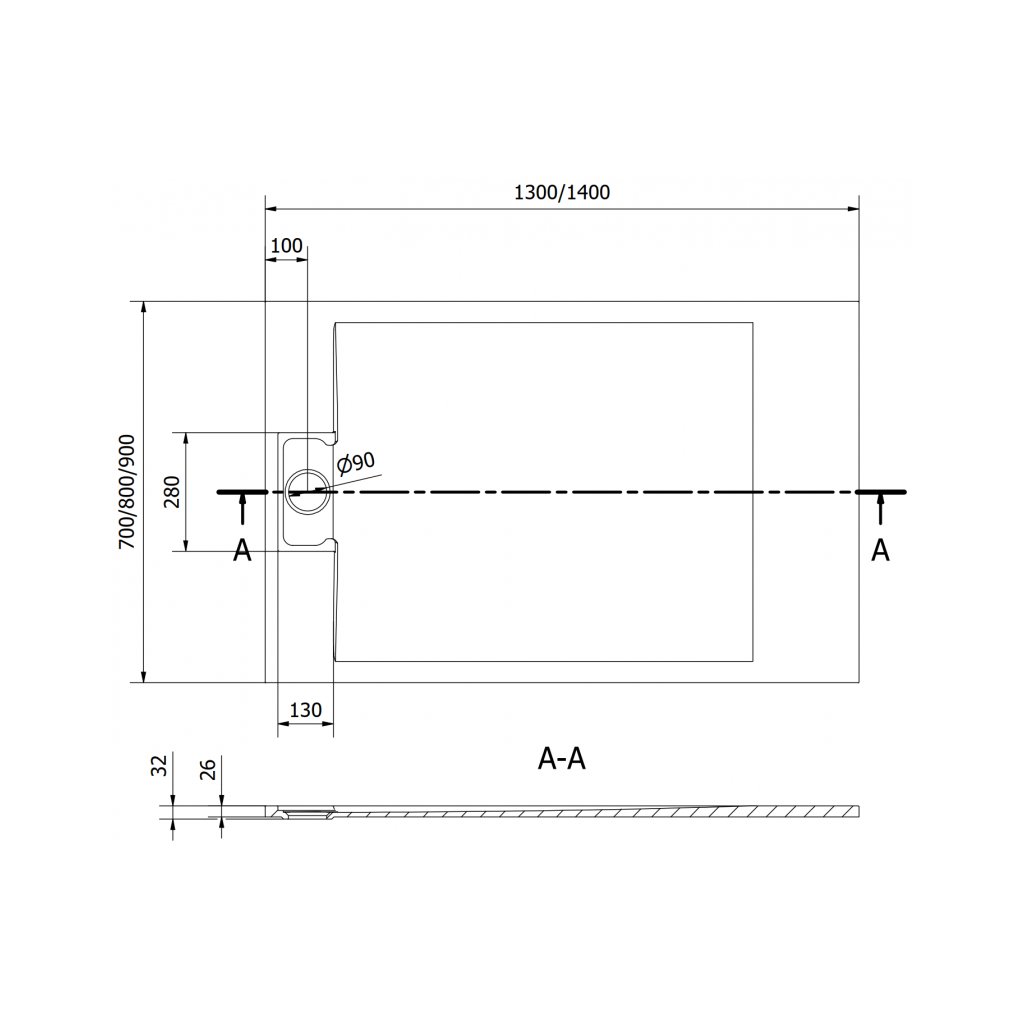 - Priemer odtoku: 90 mm