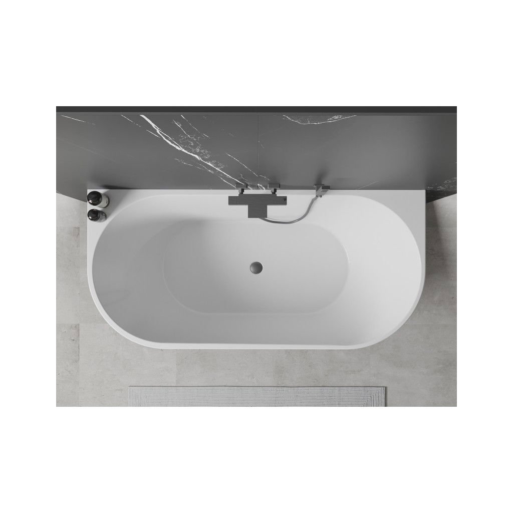 Mexen Oval, voľne stojaca nástenná vaňa 140 x 75 cm, biela, grafitový prepad, 52671407500-66