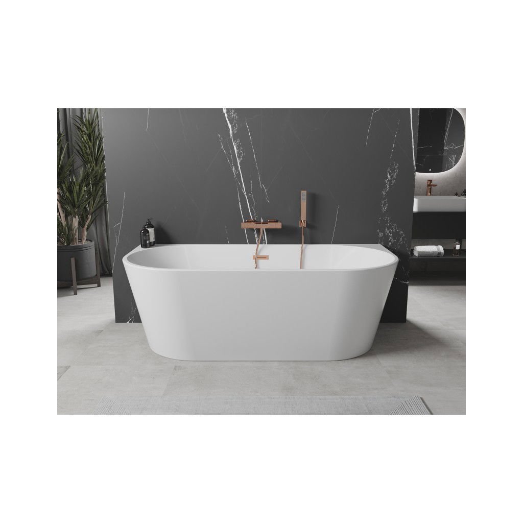 Mexen Oval, voľne stojaca nástenná vaňa 140 x 75 cm, biela, ružové zlato prepad, 52671407500-60