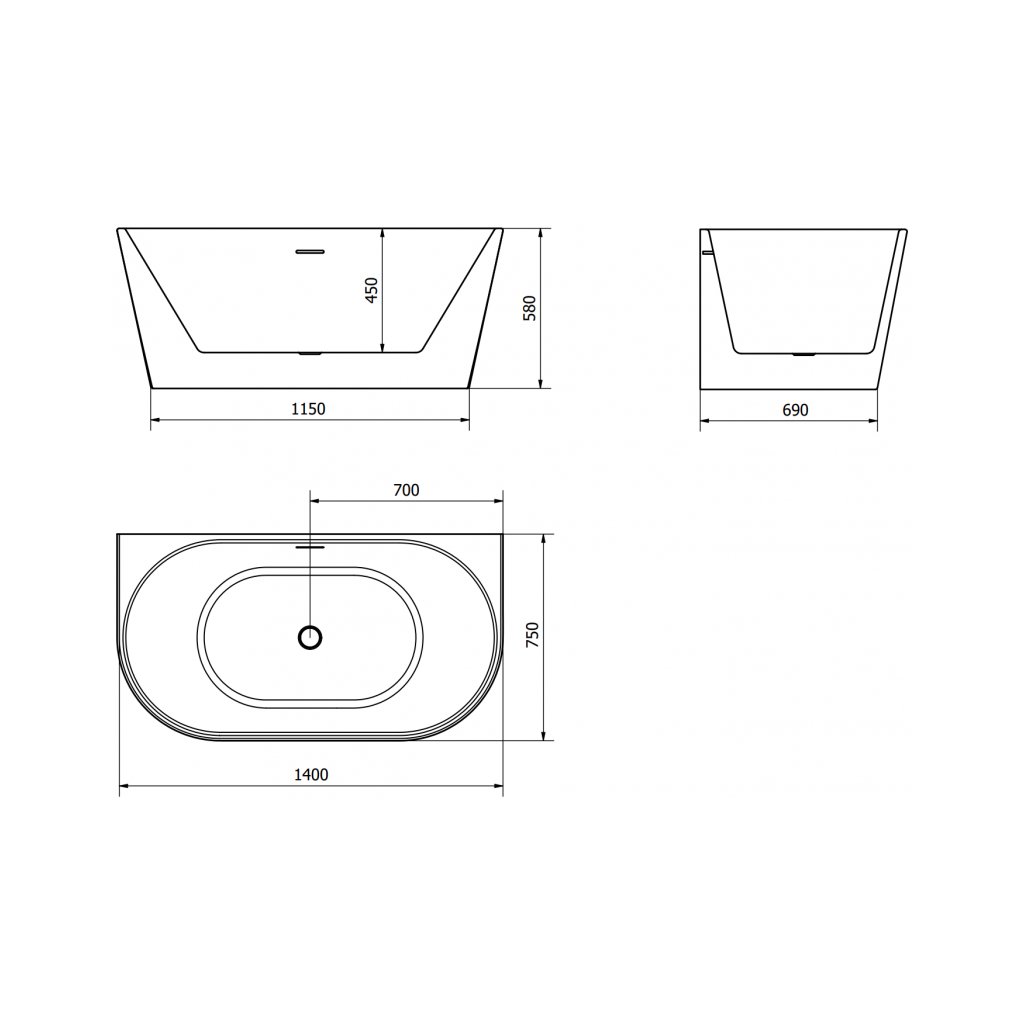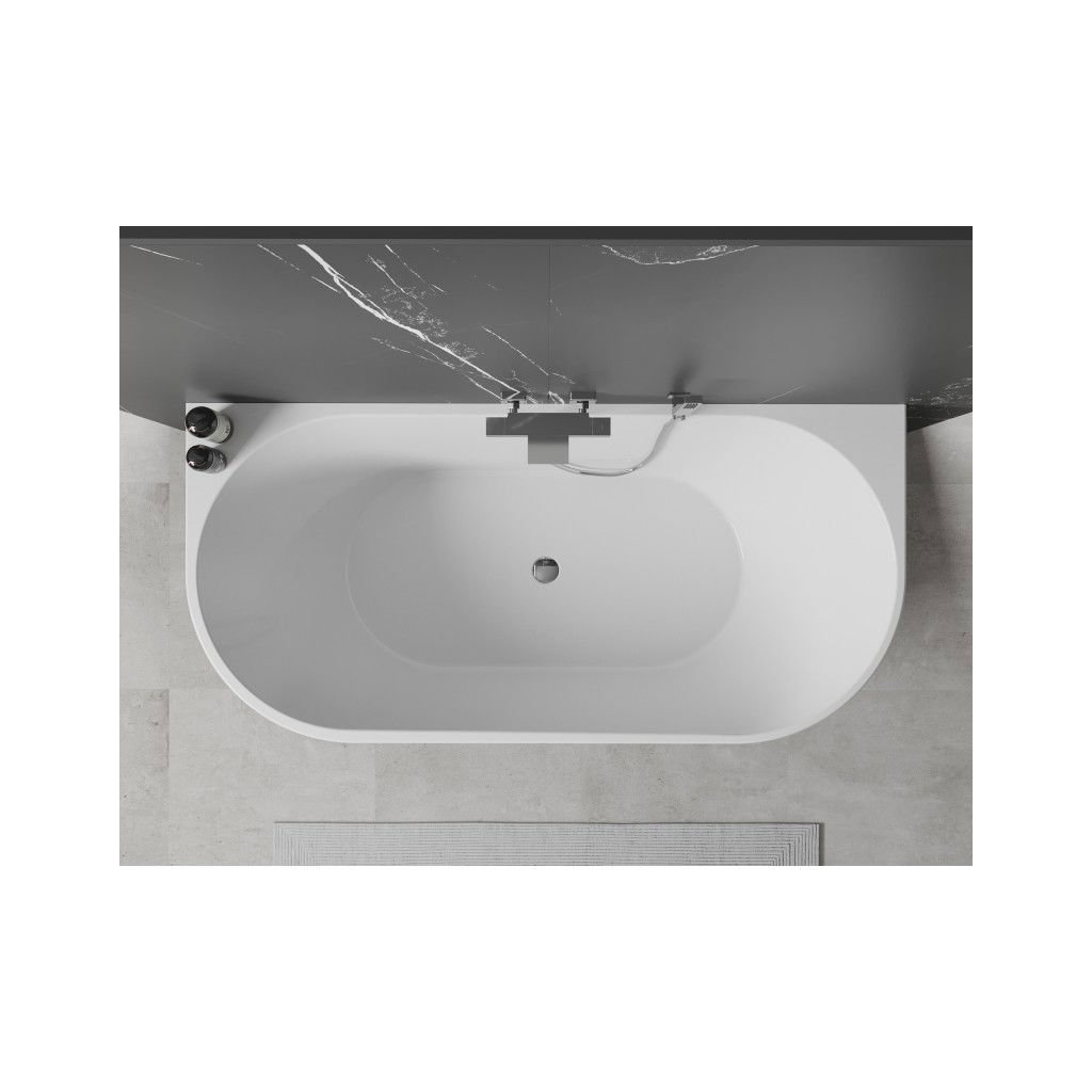Mexen Oval, voľne stojaca nástenná vaňa 140 x 75 cm, biela-čierna, chrómový prepad, 52671407575-01