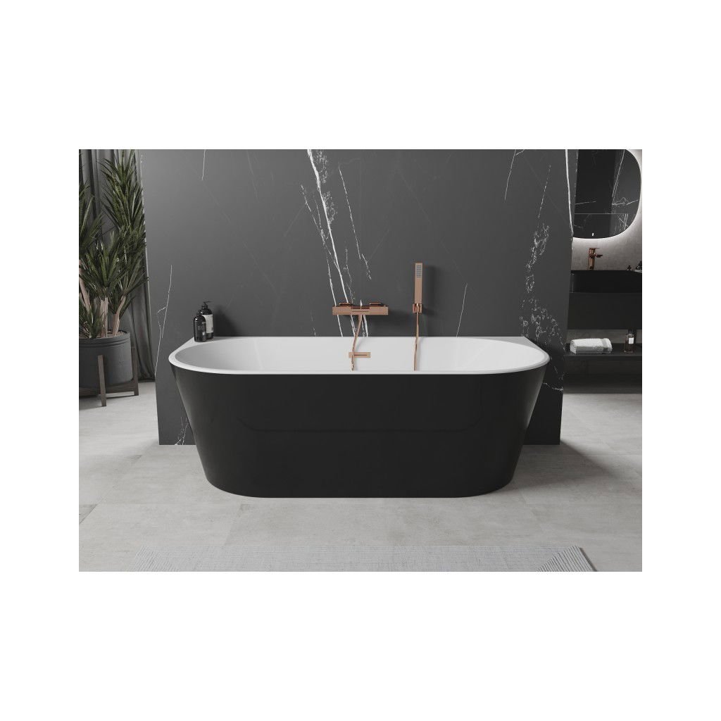 Mexen Oval, voľne stojaca nástenná vaňa 140 x 75 cm, biela-čierna, medený prepad, 52671407575-65
