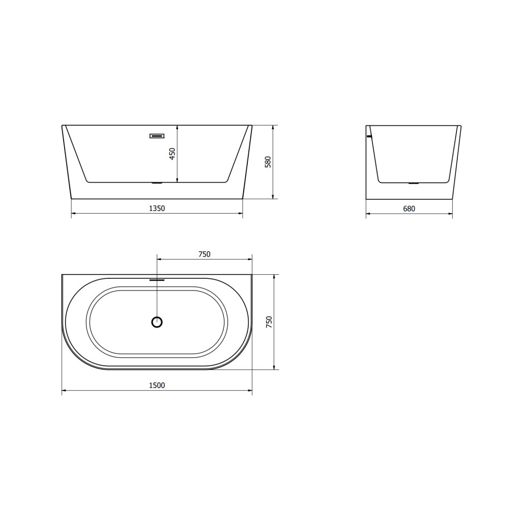 Mexen Oval, voľne stojaca nástenná vaňa 150 x 75 cm, biela-čierna, brúsená oceľ prepad, 52671507575-97