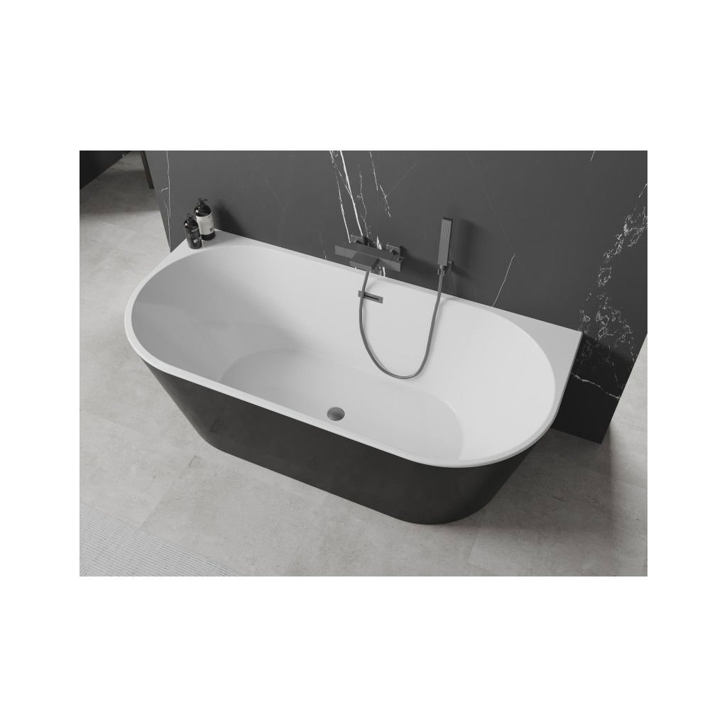 Mexen Oval, voľne stojaca nástenná vaňa 150 x 75 cm, biela-čierna, grafitový prepad, 52671507575-66