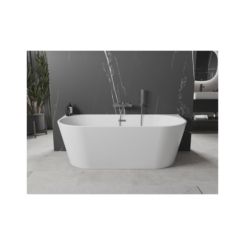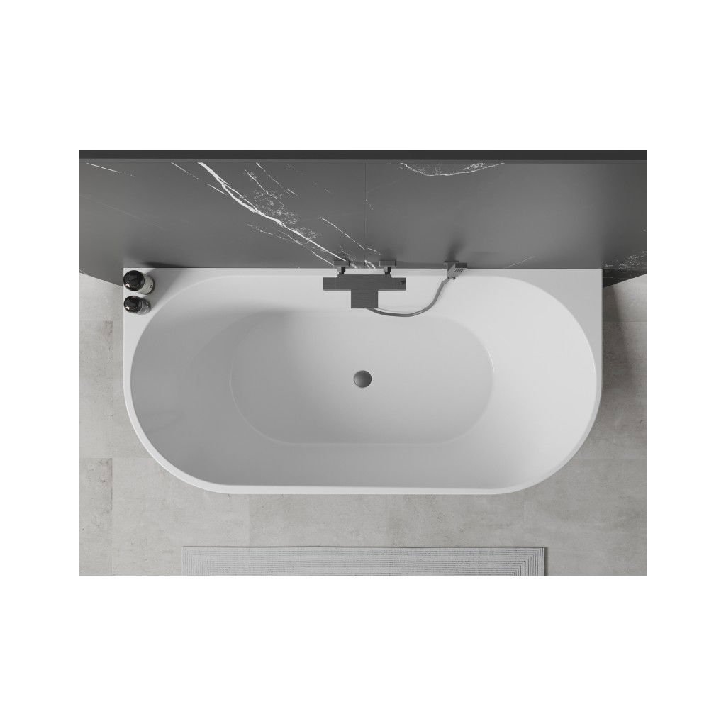 Mexen Oval, voľne stojaca nástenná vaňa 160 x 80 cm, biela, brúsený grafit prepad, 52671608000-95