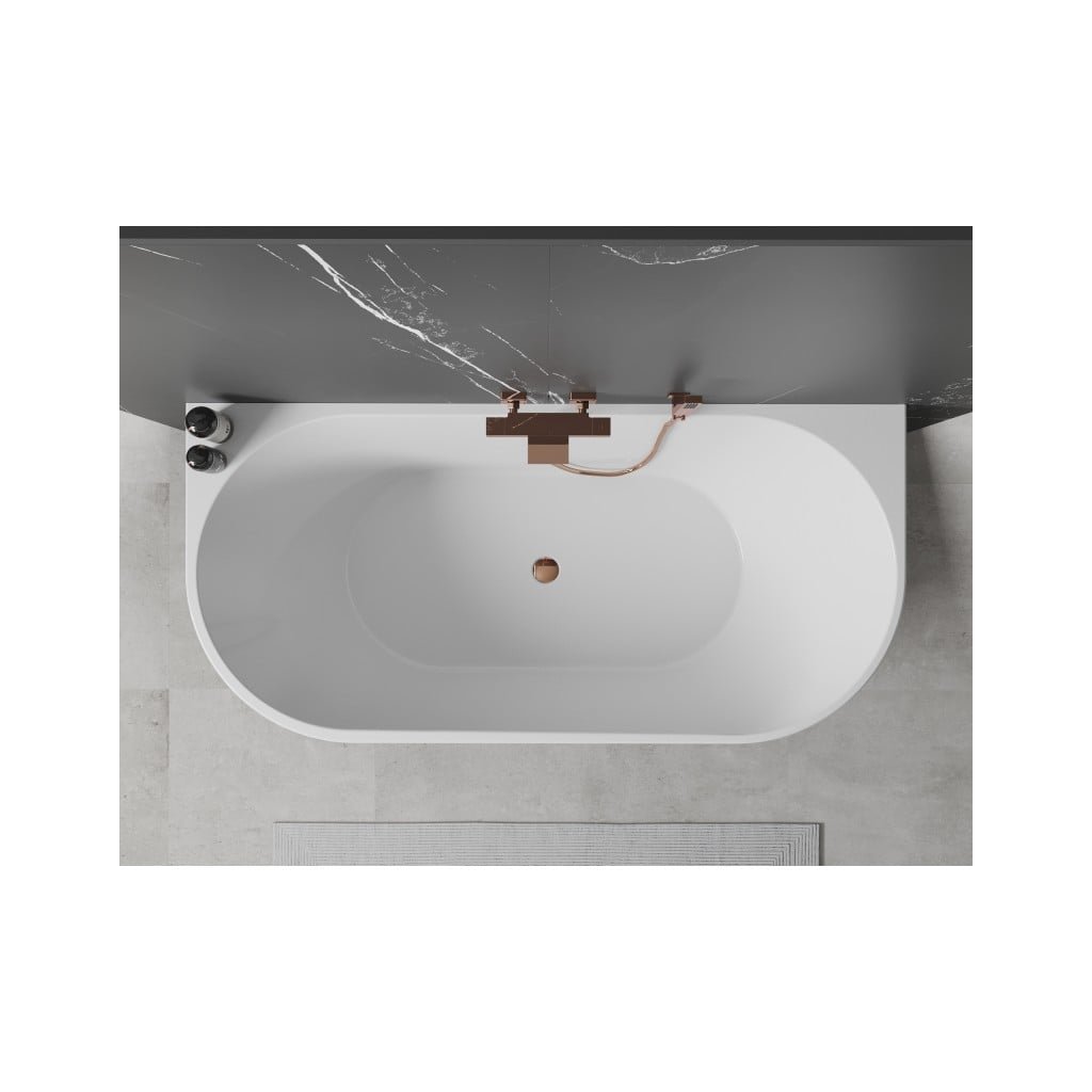 Mexen Oval, voľne stojaca nástenná vaňa 160 x 80 cm, biela, ružové zlato prepad, 52671608000-60