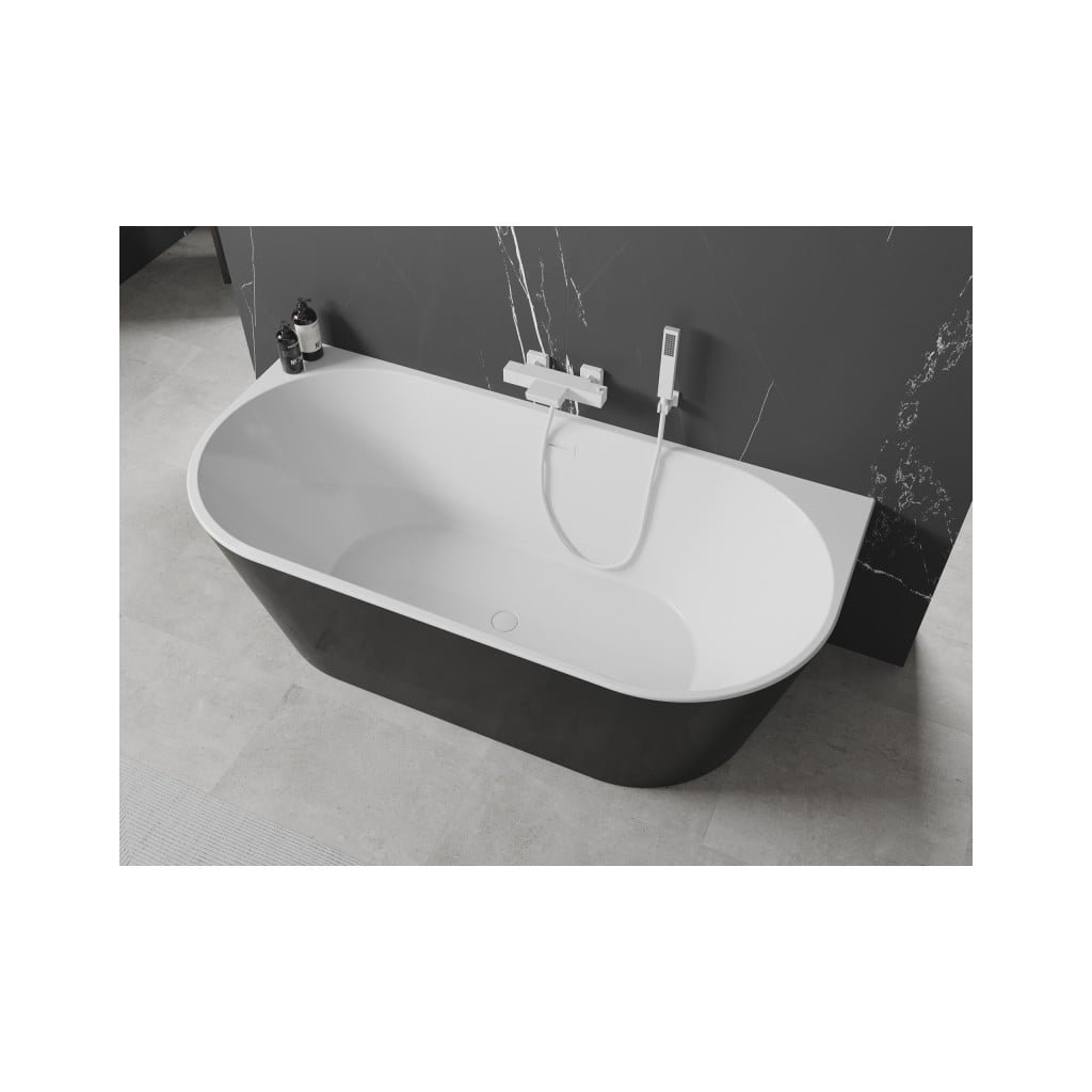 Mexen Oval, voľne stojaca nástenná vaňa 160 x 80 cm, biela-čierna, biely prepad, 52671608075-20