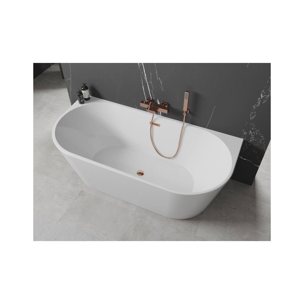 Mexen Oval, voľne stojaca nástenná vaňa 170 x 80 cm, biela, ružové zlato prepad, 52671708000-60