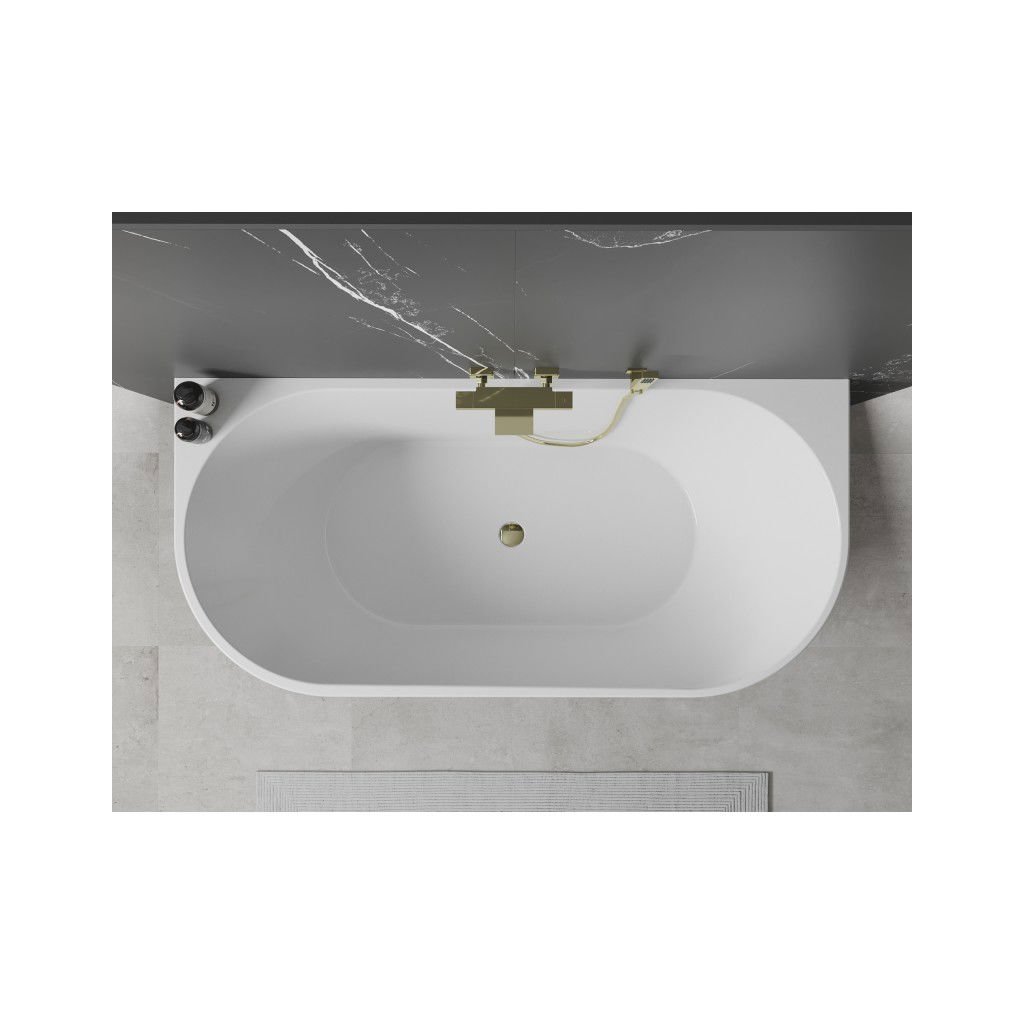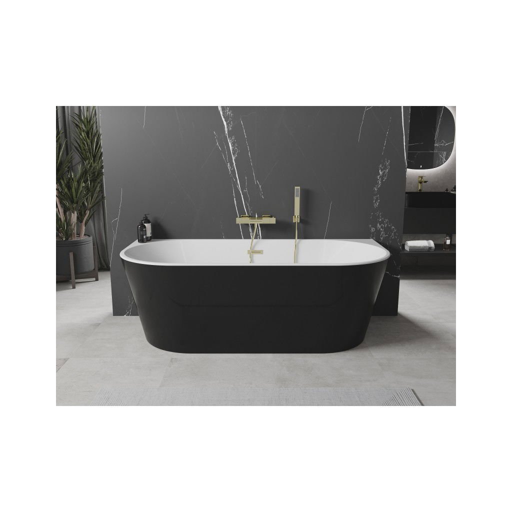 Mexen Oval, voľne stojaca nástenná vaňa 170 x 80 cm, biela-čierna, zlatý lesklý prepad, 52671708075-50