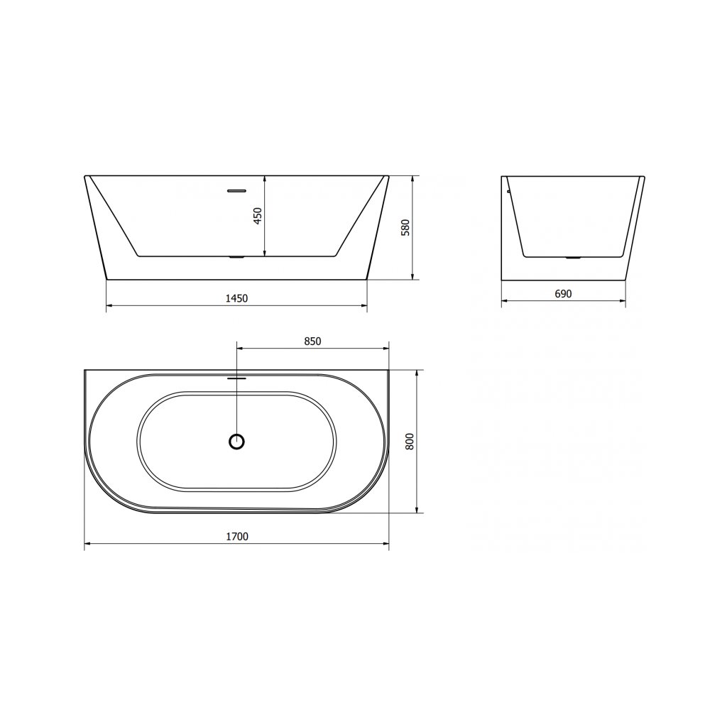 Mexen Oval, voľne stojaca nástenná vaňa 170 x 80 cm, biela-čierna, zlatý matný prepad, 52671708075-55