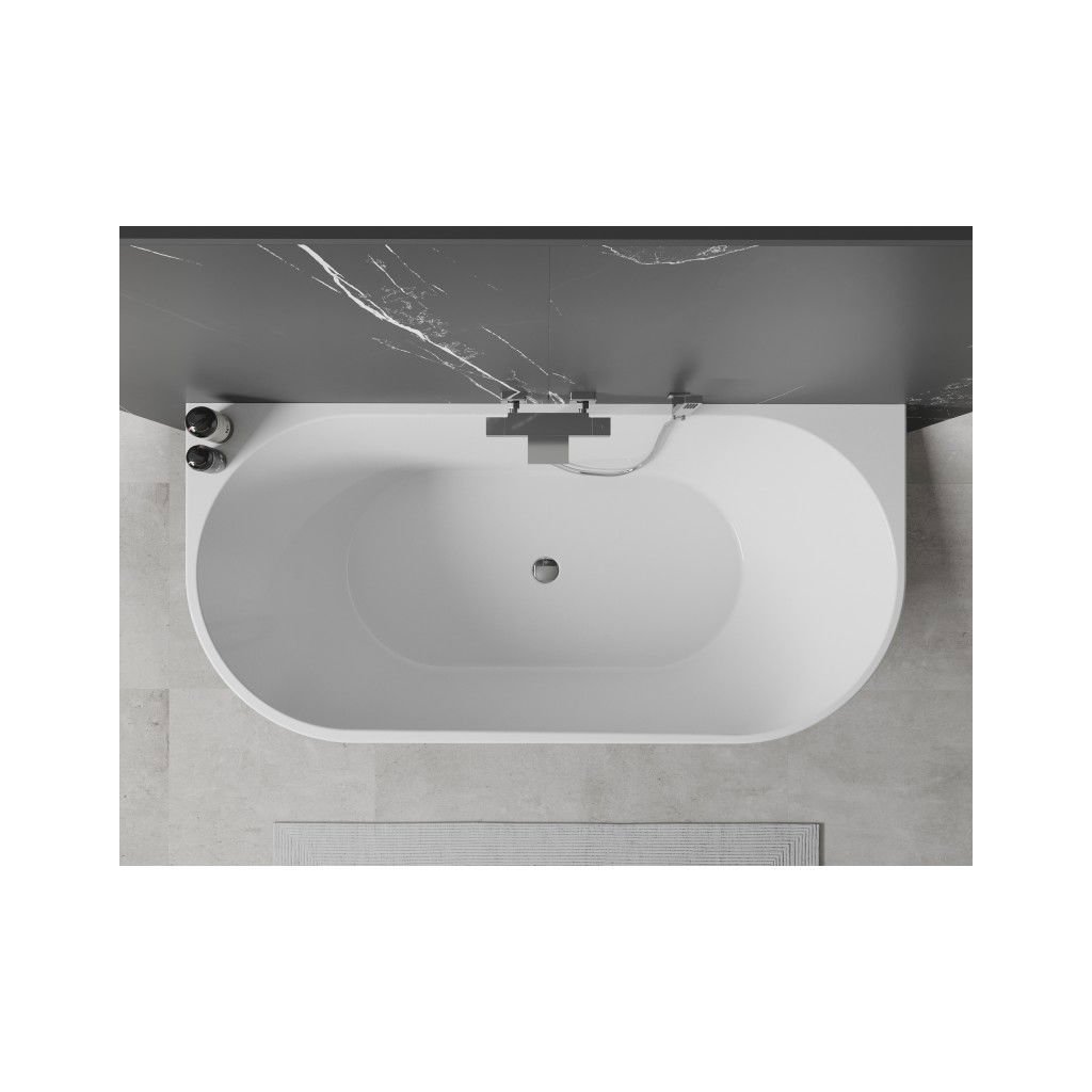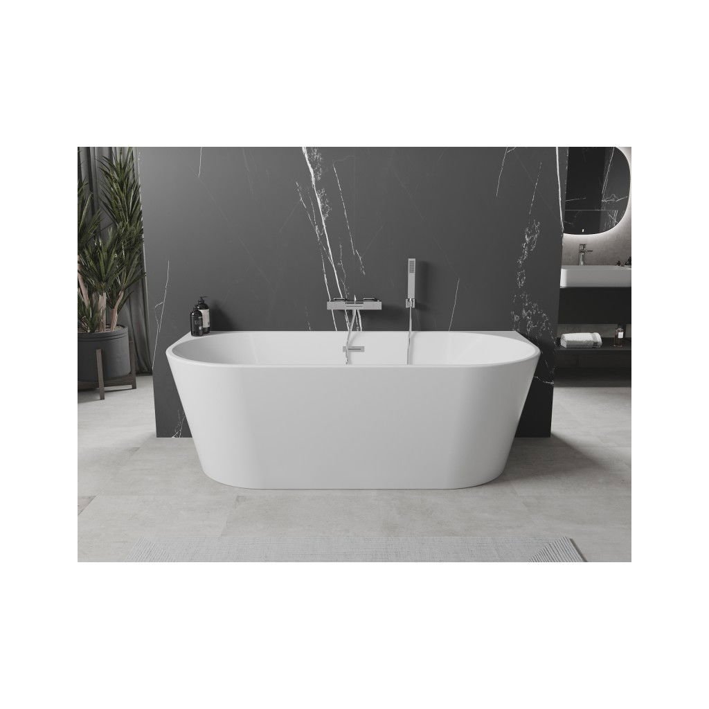 Mexen Oval, voľne stojaca nástenná vaňa 180 x 80 cm, biela, chrómový prepad, 52671808000-01